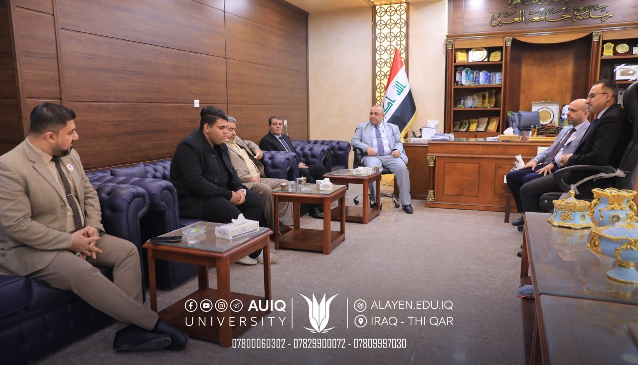 وكان في استقباله مساعد رئيس الجامعة للشؤون العلمية الأستاذ المساعد الدكتور حيدر عبد الأمير مرهون مساعد رئيس الجامعة للشؤون الإدارية الأستاذ المساعد الدكتور أثير يوسف عودة وعميد كلية طب الأسنان الأستاذ المساعد الدكتور إحسان عبد الله كميل الخزاعي ومدير قسم الشؤون العلمية الدكتور ميثم طالب الموسوي.