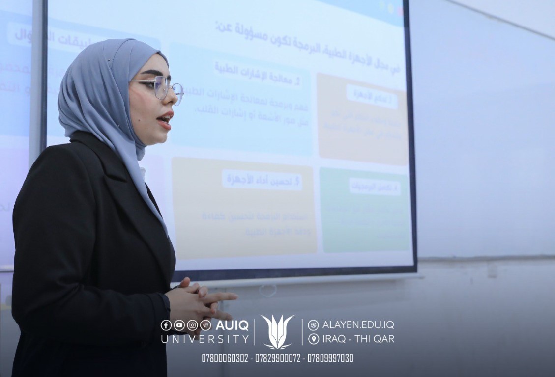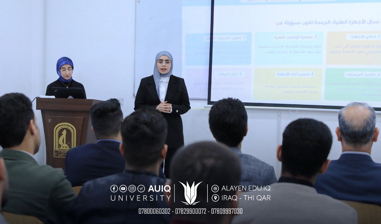 برعاية عميد الكلية التقنية الهندسية الاستاذ المساعد الدكتور رافد صكبان عبود، اقامت الكلية الورشة الثانية ضمن سلسلة الورش العلمية الطلابية والتي سبق وان اطلقت خلال الاسابيع الماضية وبعنوان " مابين الاجهزة الطبية والحاسوب" ، قامت بإلقائها كل من الطالبة اديان علي جليل والطالبة فاطمة عماد حميد.