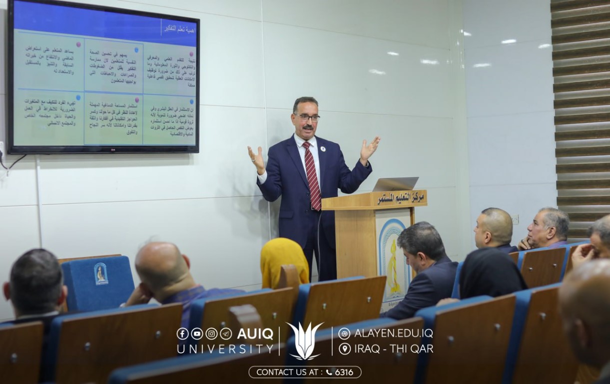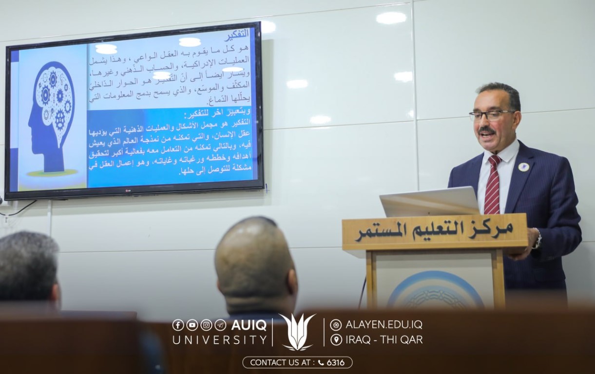 أقام مركز التعليم المستمر في جامعة العين العراقية، السبت 4 أيار 2024، ضمن البرنامج الحكومي لتطوير وتأهيل القيادات الجامعية في محورها الخامس دورة تنمية المهارات الذاتية لتأهل وتطوير القيادات الجامعية، حاضر فيها التدريسي الأستاذ الدكتور جلال شنته جبر.