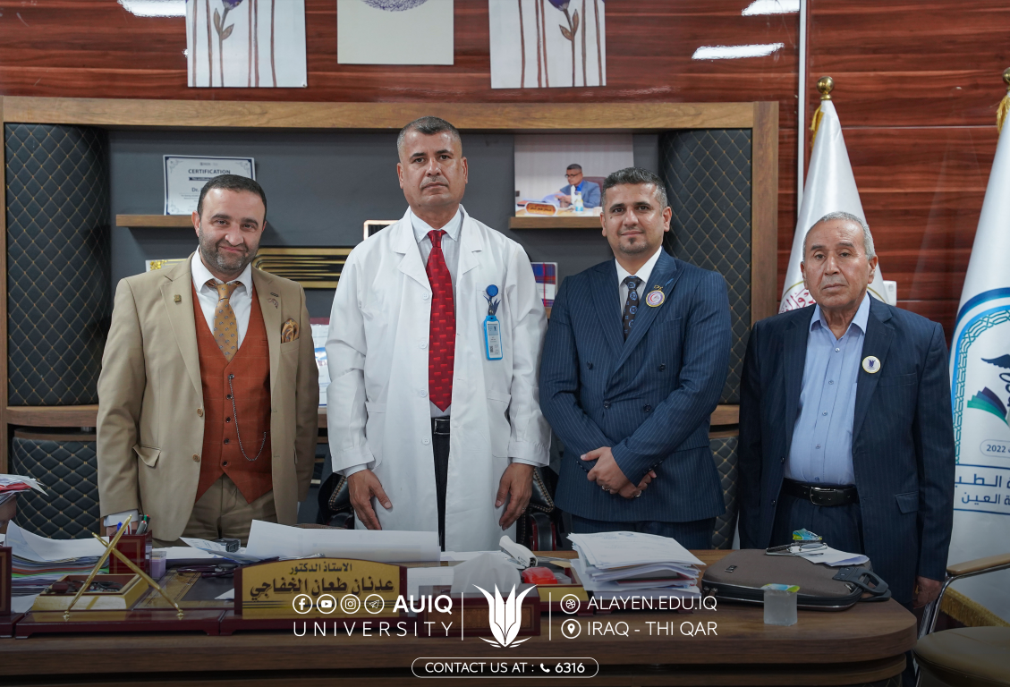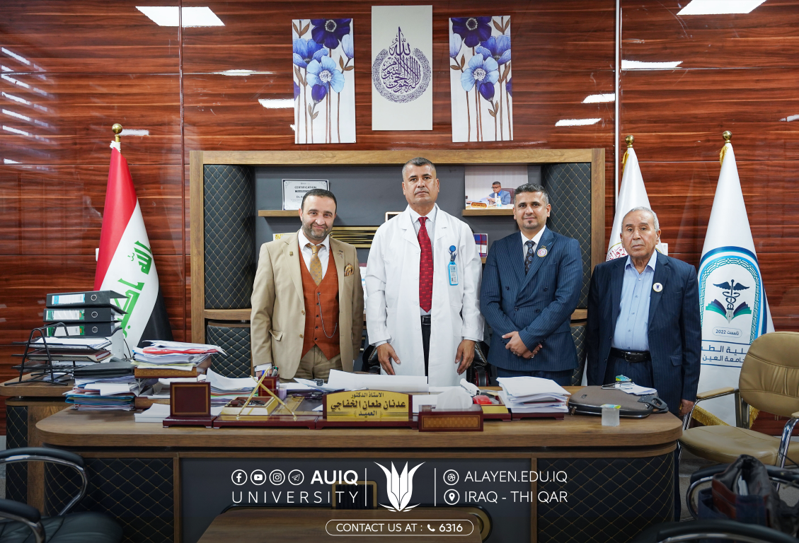 حيث تم التباحث مع عميد كلية الطب جامعة العين العراقية الأستاذ الدكتور عدنان طعان الخفاجي في سبل إدامه التعاون العلمي بين الكليتين .