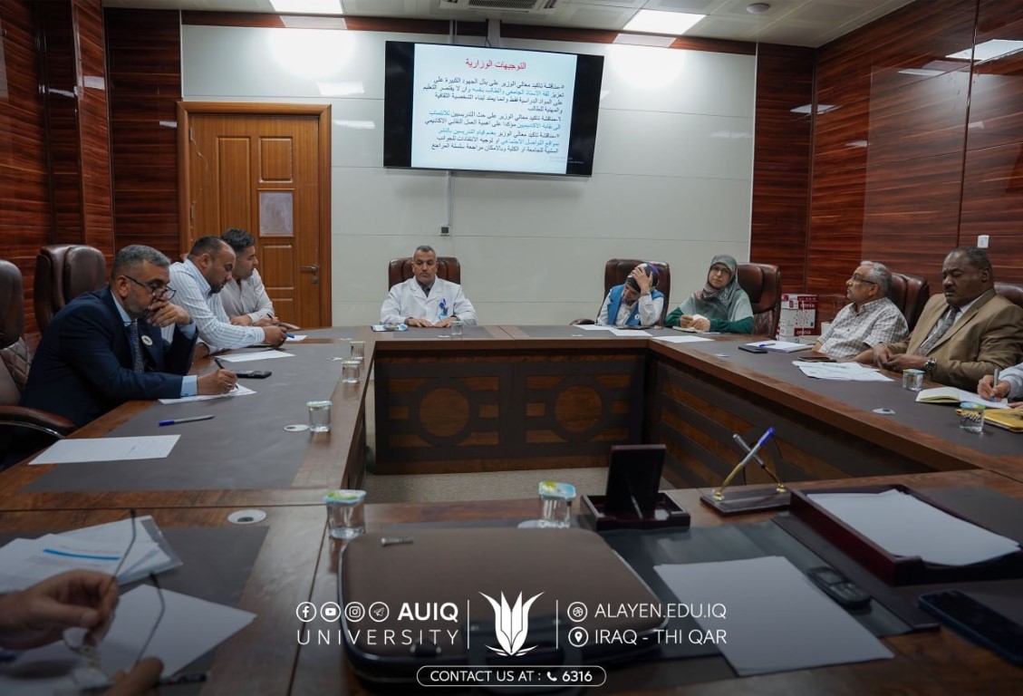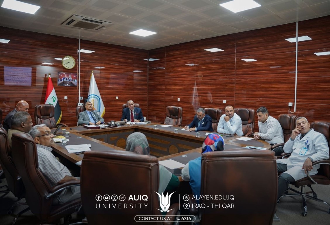 حيث ترأس المجلس عميد كلية الطب جامعة العين العراقية الإستاذ الدكتور عدنان طعان الخفاجي وبحضور السادة المعاونين ورؤساء الفروع العلمية .