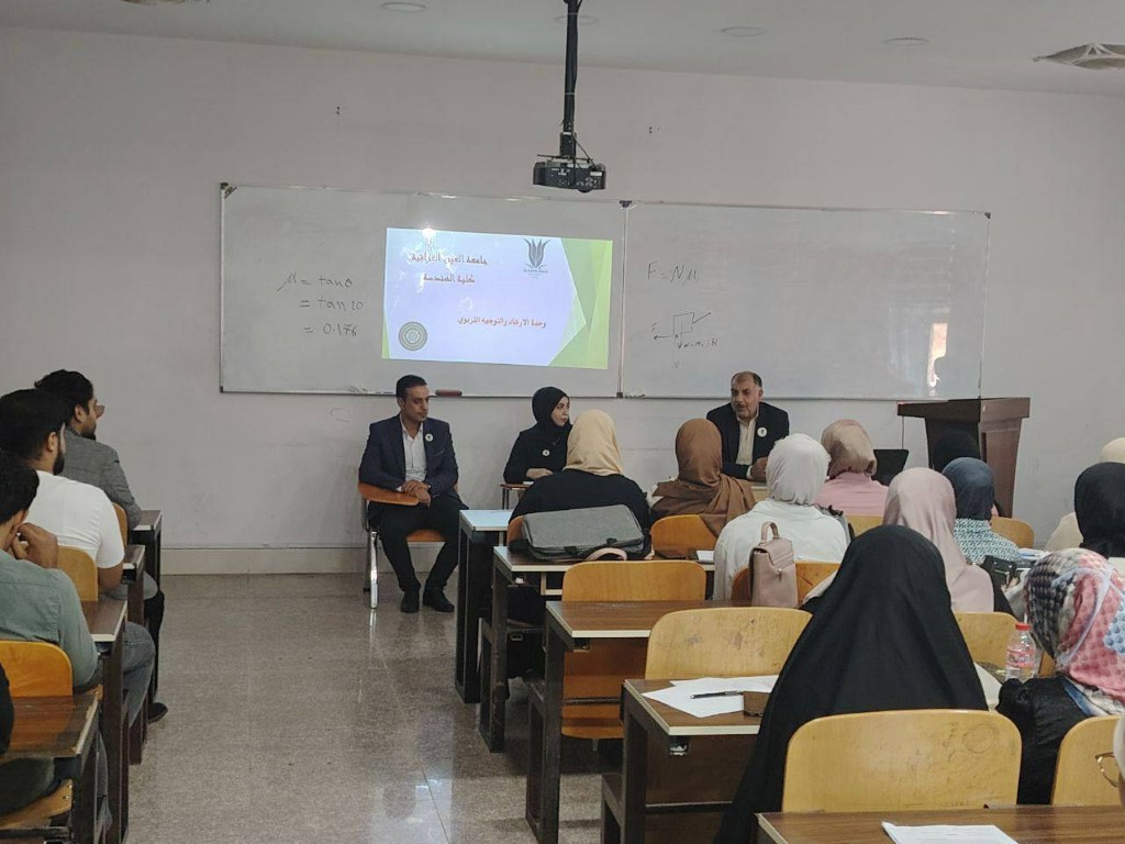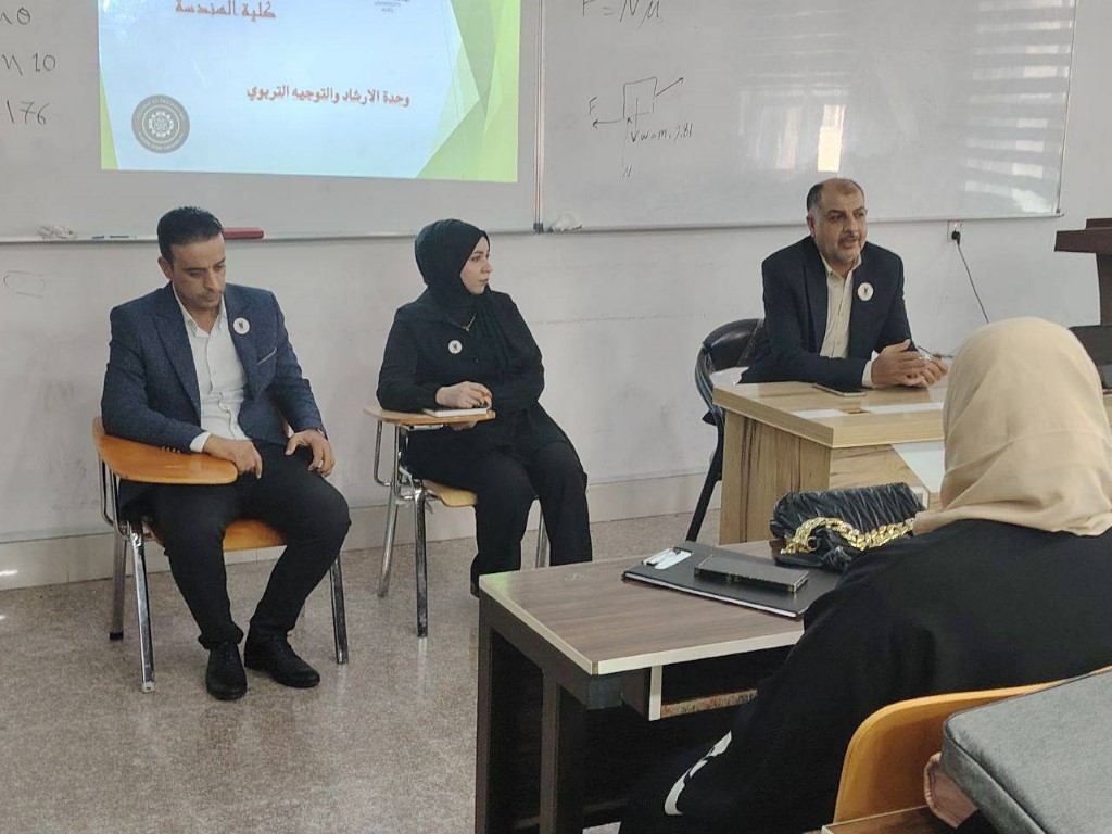 عقدت وحدة الإرشاد النفسي والتوجيه التربوي في كلية الهندسة جامعة العين العراقية ,الاربعاء 6 تشرين الثاني 2024, جلسة إرشادية شاملة لطلبة قسم هندسة الذكاء الاصطناعي، وذلك في إطار سعي الكلية لدعم الطلاب أكاديمياً ونفسياً. هدفت الجلسة إلى تزويد الطلبة بعدد من الإرشادات والتوجيهات التي تساعدهم على مواجهة التحديات الدراسية وتجاوز الضغوطات التي قد يواجهونها خلال فترة دراستهم.