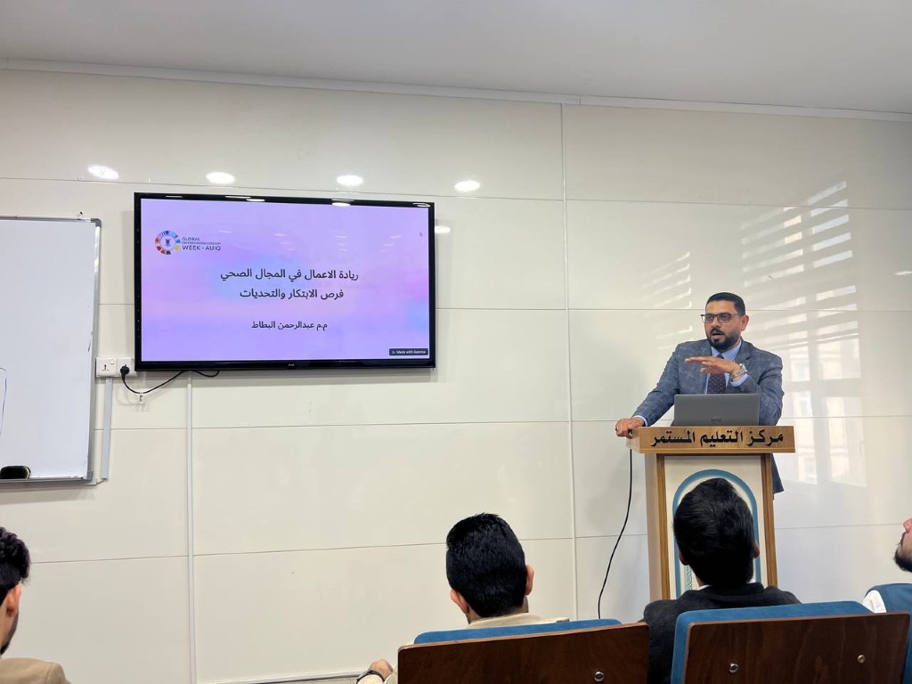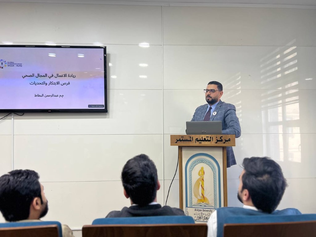حيث شملت الفعاليات محاضرة بعنوان “ريادة الأعمال في المجال الصحي: فرص الابتكار والتحديات” قدمها الأستاذ المساعد عبد الرحمن عباس البطاط، مدير مركز التعليم المستمر، حيث استعرض الفرص المتاحة في قطاع الصحة وأبرز التحديات التي تواجه رواد الأعمال في هذا المجال.