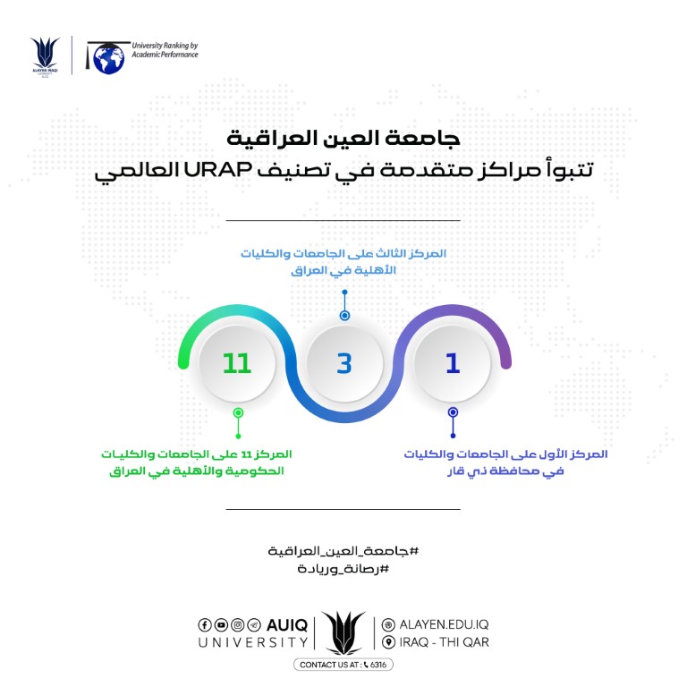 كما تصدرت الجامعة المرتبة الأولى على مستوى جامعات وكليات محافظة ذي قار، مما يعكس تميزها الأكاديمي والبحثي.
