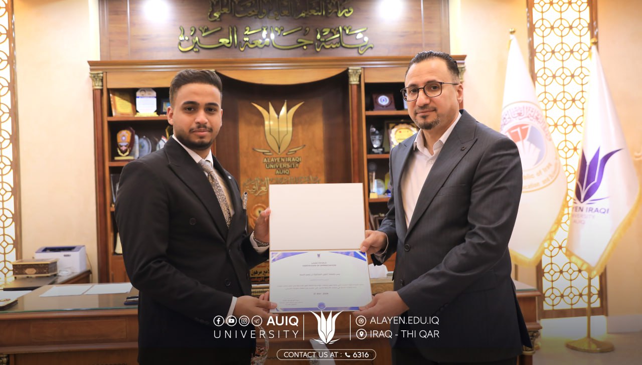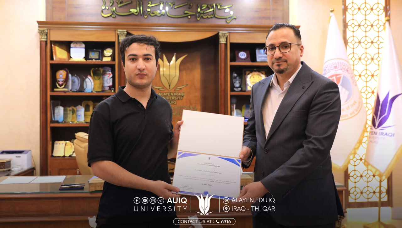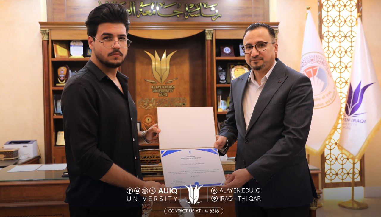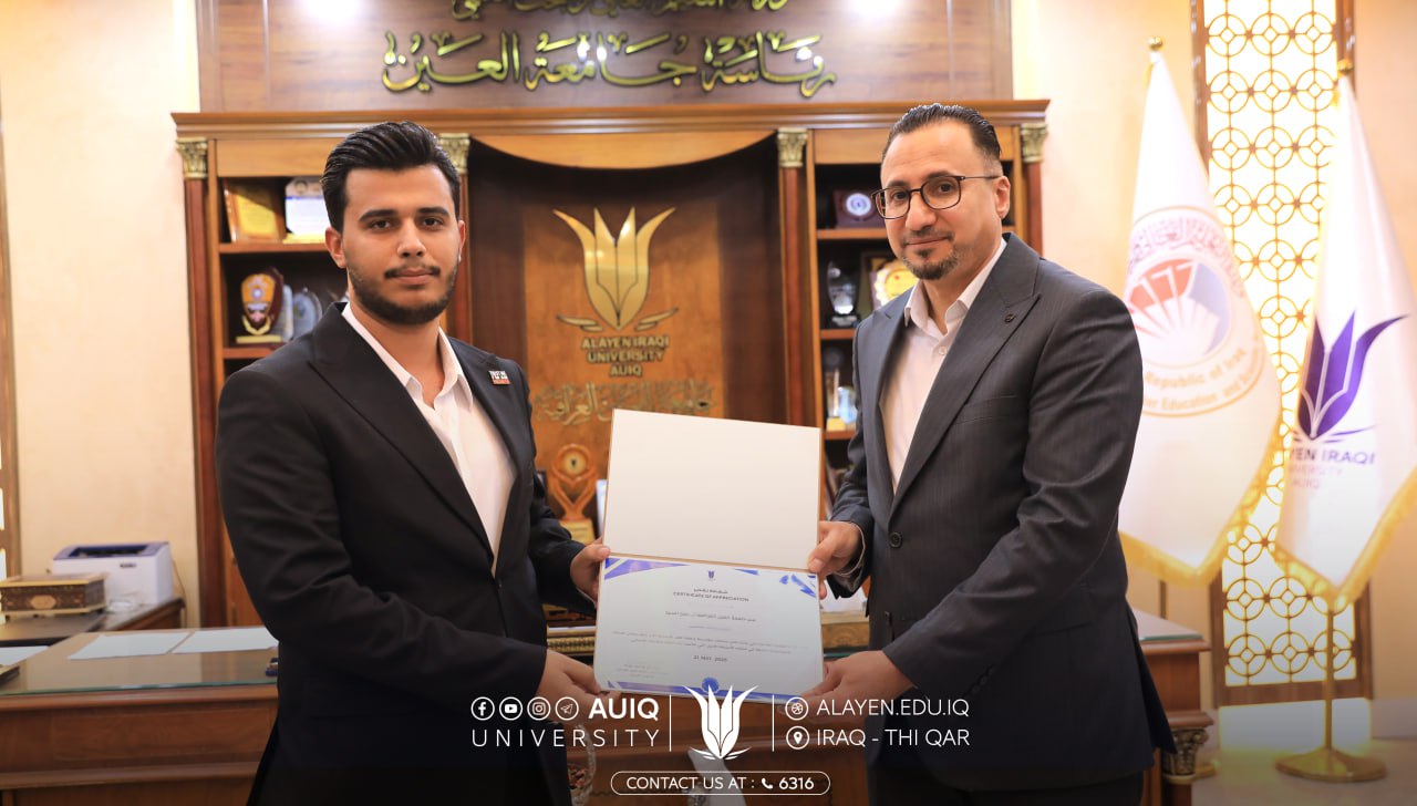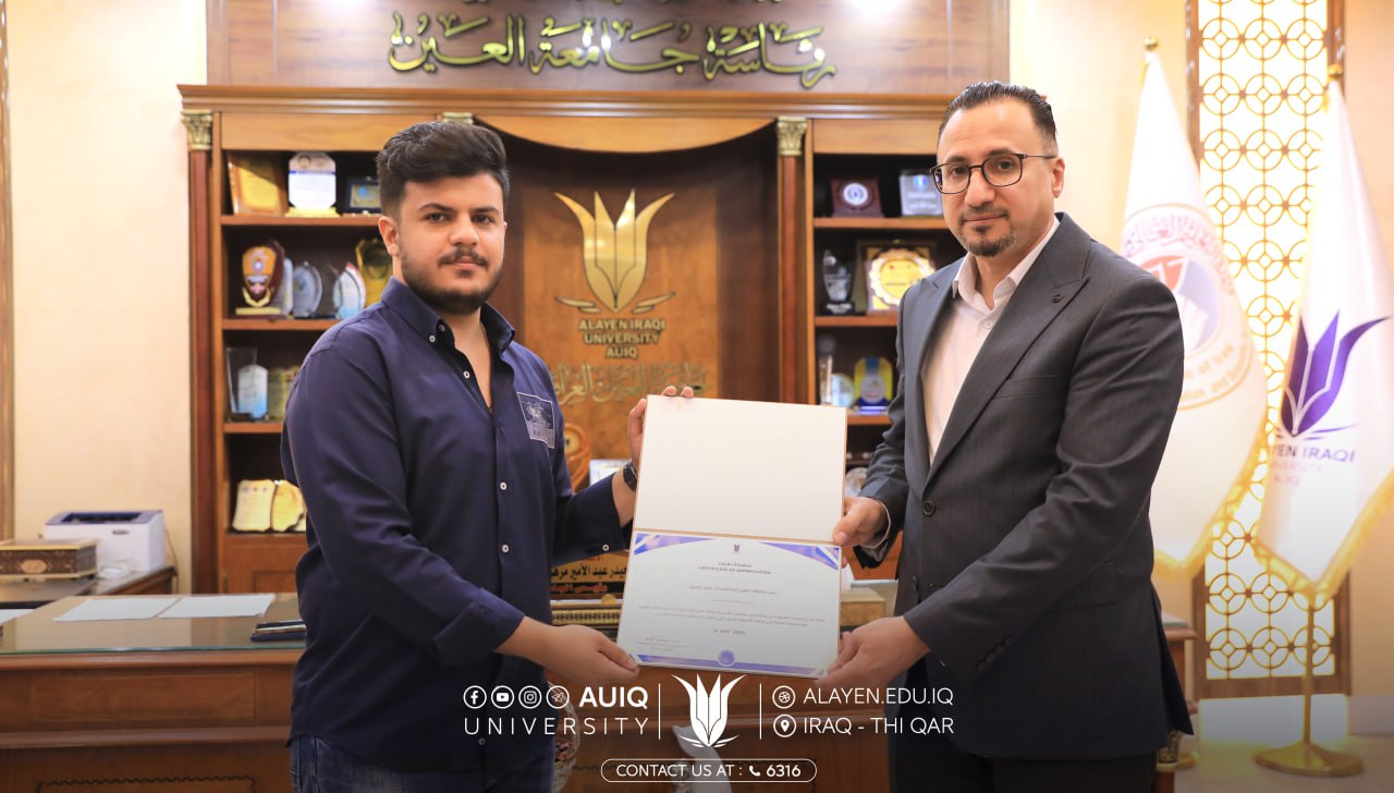 كرّم مساعد رئيس جامعة العين العراقية للشؤون الإدارية الأستاذ المساعد الدكتور أثير يوسف، الاربعاء ٢١ ايار ٢٠٢٥، مؤسسة جامعة العين الإنسانية تثمينًا للدور الفاعل الذي قدمته في مجال العمل الإنساني والخدمي ومساهمات أعضائها في مختلف الأنشطة المجتمعية التي نظمتها المؤسسة خلال الفترة الماضية.
