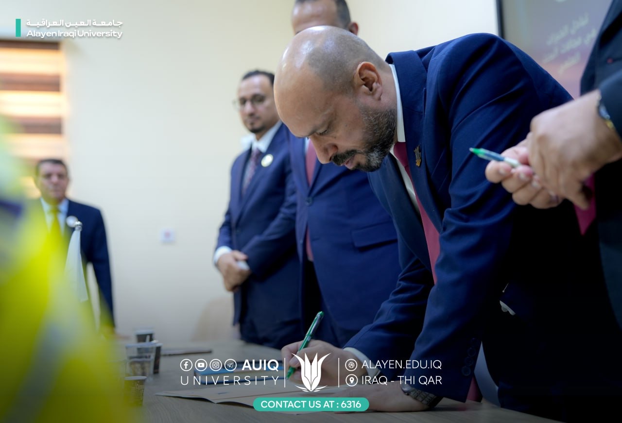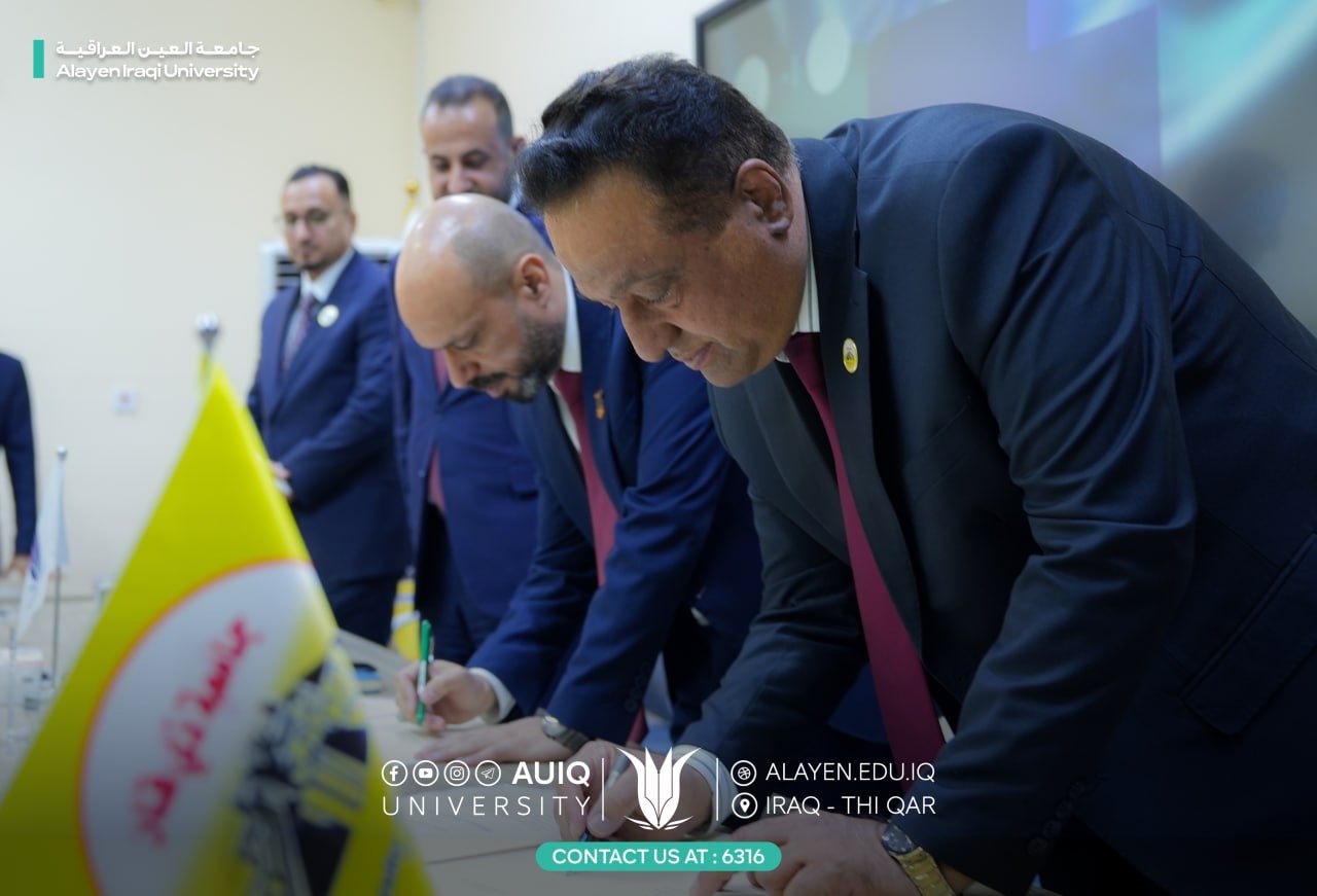 وقد مثّل جامعة العين العراقية في التوقيع رئيسها الأستاذ الدكتور حيدر عبد الأمير مرهون، فيما مثّل جامعة ذي قار رئيسها الأستاذ الدكتوركمال حامد الياسري.