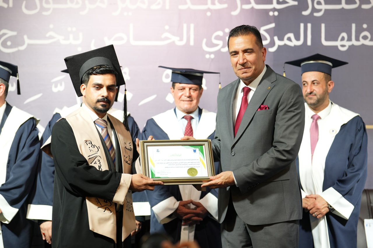 في مشهد مهيب احتضنه حفل التخرج المركزي لجامعة العين العراقية، شهدت الجامعة تكريماً خاصاً ومستحقاً للطالب المتفوق [كاظم جواد]، من قسم تقنيات الأشعة في كلية التقنيات الصحية والطبية، وذلك لحصوله على المرتبة الأولى على مستوى الجامعة لعام [2024-2025/الثانية].