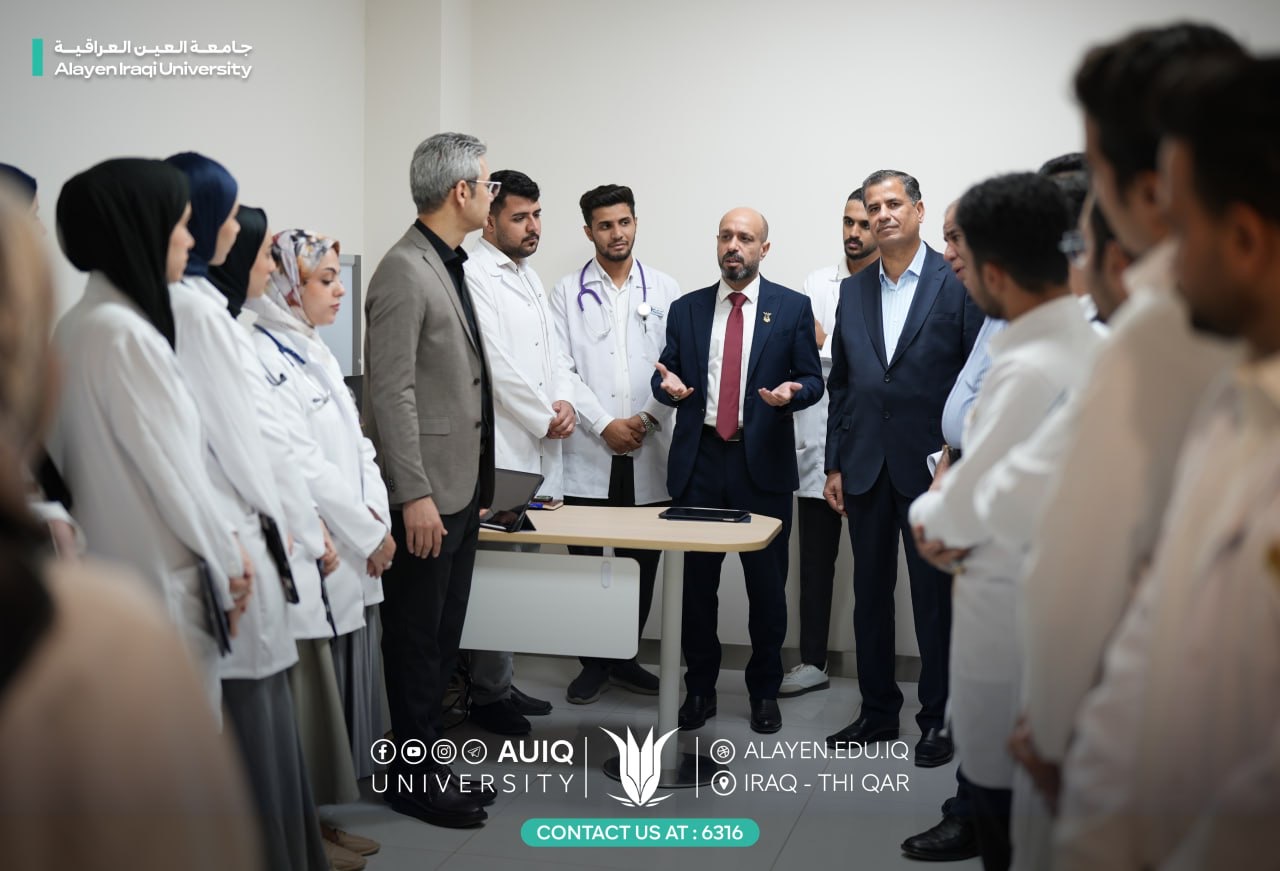 كما شملت الجولة زيارة مستشفى العين التعليمي للاطلاع على تدريب طلبة المرحلة الرابعة الذين باشروا الجانب التطبيقي من دراستهم حيث يُنفّذ التدريب السريري بإشراف مباشر من أساتذة الكلية ضمن بيئة طبية تعليمية متكاملة داخل المستشفى.