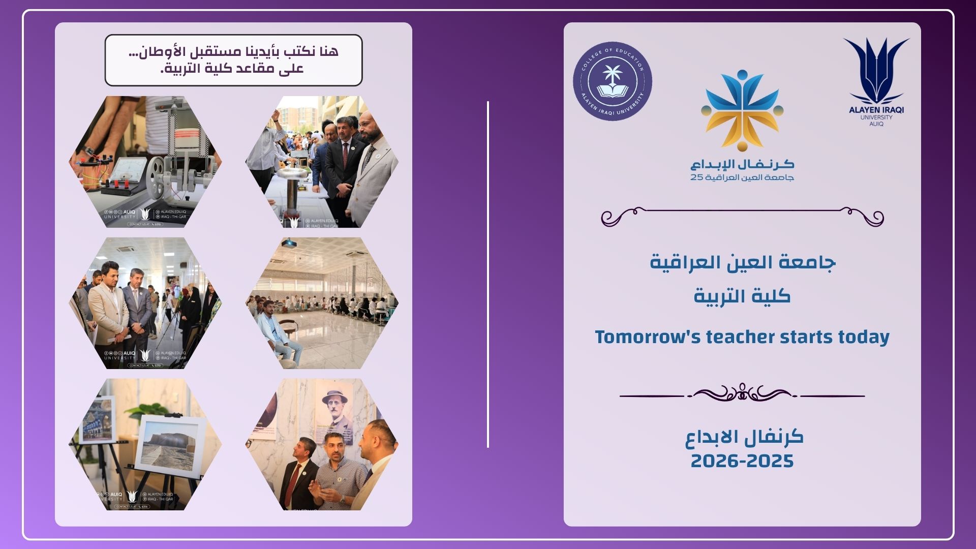 تعلن كلية التربية في جامعة العين العراقية عن توفر درجات وظيفية لحملة درجة الماجستير أو الدكتوراه لعدد من التخصصات أدناه على أن يكون المتقدم غير معين أو متعاقد في أي مؤسسة حكومية أو أهلية عراقية.