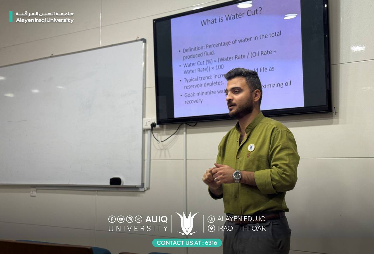 أقامت وحدة التعليم المستمر في كلية الهندسة بجامعة العين العراقية ورشة علمية بعنوان “Water Cut Management & Production Challenges”، قدّمها المدرس المساعد حسن علي عزيز.
