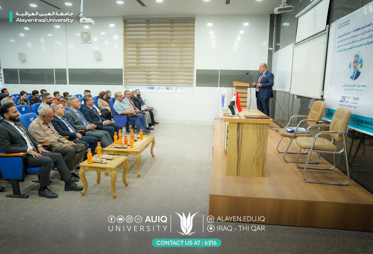وشهدت المحاضرة حضور الأستاذ الدكتور عماد عبد الرزاق الموسوي عميد كلية التربية للعلوم الصرفة في جامعة ذي قار، والدكتور عدنان هاشمالركابي معاون العميد للشؤون العلمية،والأستاذ محمد نزال معاون العميد لشؤون الطلبة والدكتور موسى محمد مهدي رئيس قسم الفيزياء و د. فيصل عبد عودة رئيس قسم التربية الفنية في كلية التربية بجامعة العين العراقية وعدد من تدريسيي الكلية وطلبتها.