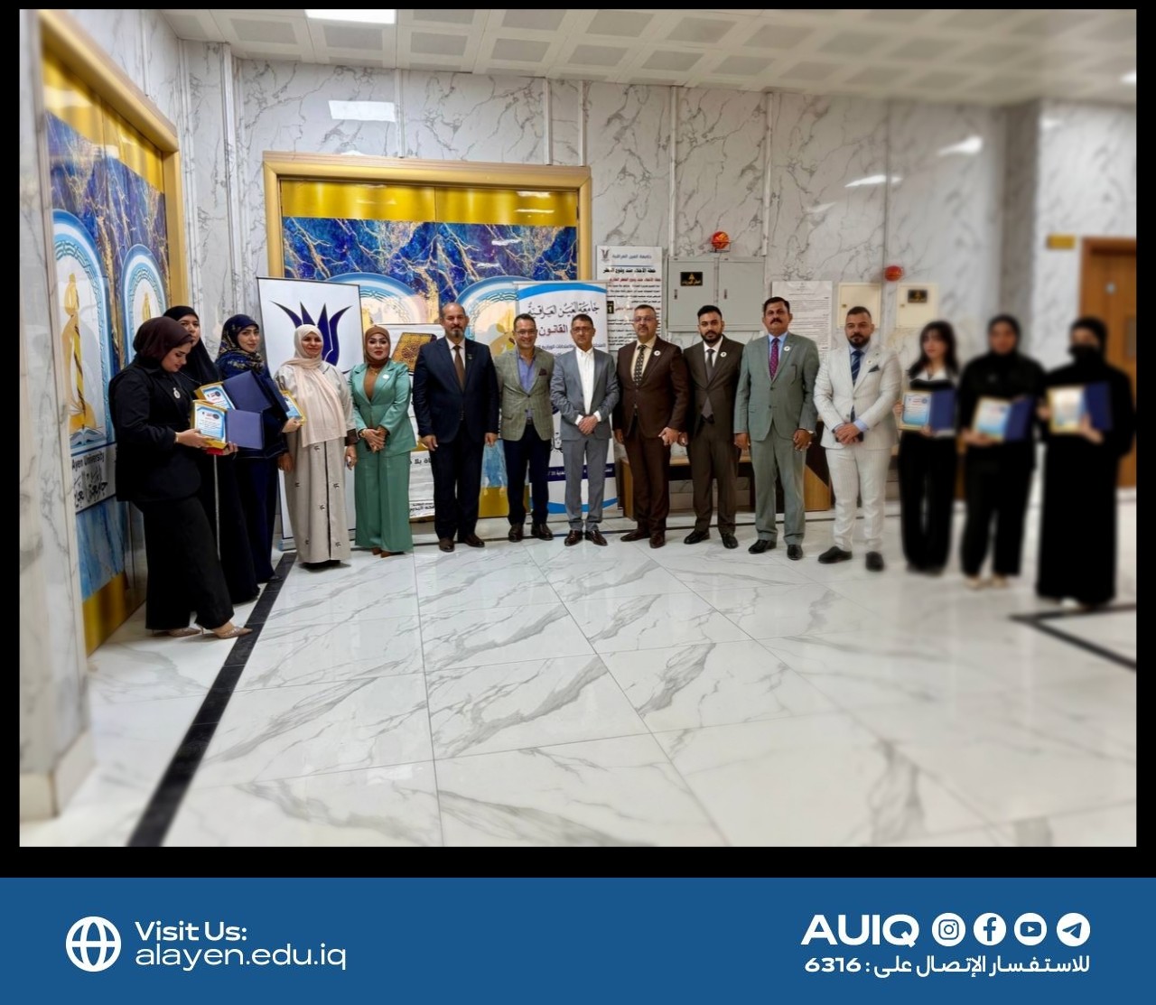 احتفت عمادة كلية القانون بالطلبة الأوائل من الدراستين الصباحية والمسائية، تقديرا لتفوقهم الأكاديمي وإبداعهم المتميز خلال العام الدراسي، حيث جرى منحهم دروع التميز ضمن فعاليات اليوم الثاني لكرنفال الإبداع، تثمينا لجهودهم المثمرة.