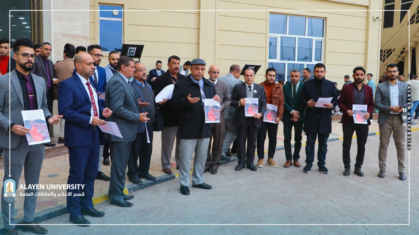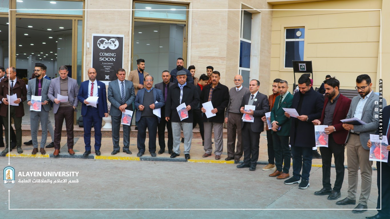 رحم الله شهداء العراق، أقامت جامعة العين وقفة حداد لرروح الشهيد العقيد ياسر الجوراني شارك فيها رئيس جامعة العين الأستاذ الدكتور شفيق شاكر شفيق المولى ومساعد رئيس جامعة العين للشؤون العلمية الأستاذ المساعد الدكتور حيدر عبد الأمير مرهون وعمداء الكليات وعدد من التدريسيين تقدم رئيس الجامعة بكلمات العزاء والمواسات وقراءة سورة الفاتحة.