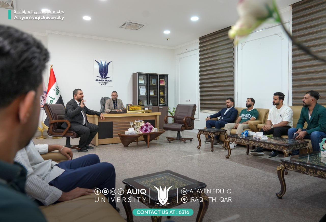 استقبل مساعد رئيس جامعة العين العراقية للشؤون العلمية الأستاذ الدكتور نصير علي حسين في مكتبه رئيس قسم تقنيات الأشعة والسونار في كلية التقنيات الصحية والطبية المدرس الدكتور حيدر سهيا برفقة عددٍ من طلبة القسم.