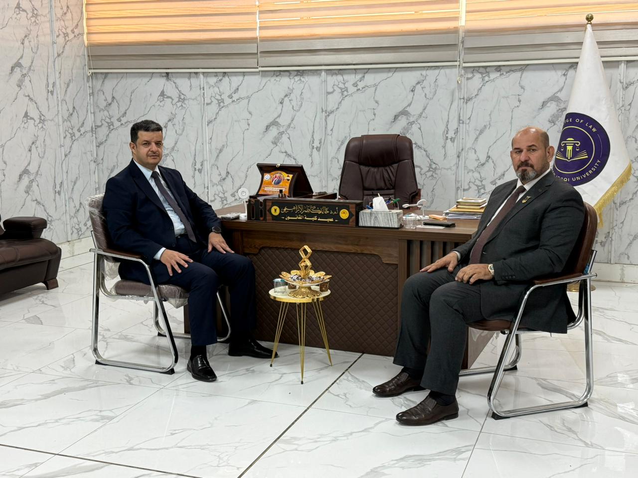 وكان في استقبال الضيف عميد كلية القانون وعدد من أعضاء الهيئة التدريسية، حيث تناول اللقاء مناقشة عدد من القوانين ذات الصلة بعمل المؤسسة الإصلاحية، إلى جانب بحث سبل التعاون المشترك بين دائرة الإصلاح وكلية القانون من خلال تنظيم الندوات العلمية والورش التخصصية المشتركة التي تسهم في تطوير الأداء القانوني والارتقاء بالمستوى العلمي والتطبيقي للطلبة.