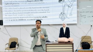 نظمت كلية التقنيات الصحية والطبية في جامعة العين العراقية، وبالتنسيق المشترك مع مركز التعليم المستمر بالجامعة، ورشة عمل تدريبية متخصصة وحيوية بعنوان "الإنعاش القلبي الرئوي (CPR)". القاها التدريسي في قسم تقنيات التخدير المدرس الدكتور "حسين علي حسين"