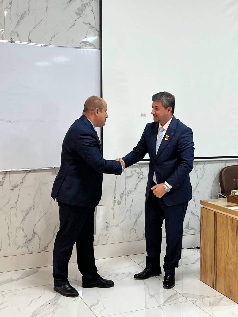 وفي ختام الفعالية، قدّم السيد العميد درع التكريم للدكتور عدنان هاشم، تثمينًا لجهوده المتواصلة خلال فترة إعارته، متمنيًا له المزيد من النجاح في مسيرته العلمية والمهنية. وقد عبّر الدكتور عدنان عن شكره وامتنانه لهذه المبادرة، مؤكدًا اعتزازه بالفترة التي قضاها في الكلية.