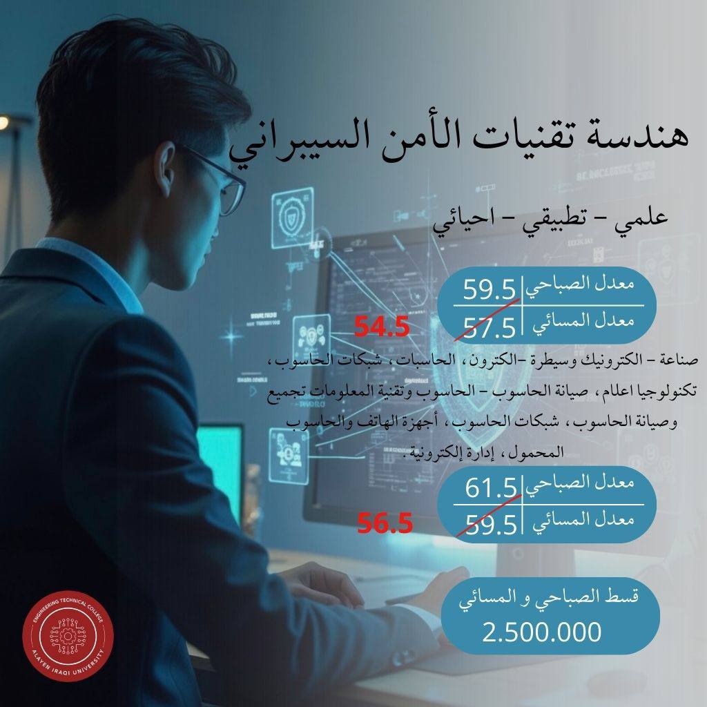 نود اعلامكم بأن تم تحديث الحد الادنى للتقديم على الدراسة المسائية في اقسام الكلية التقنية الهندسية .