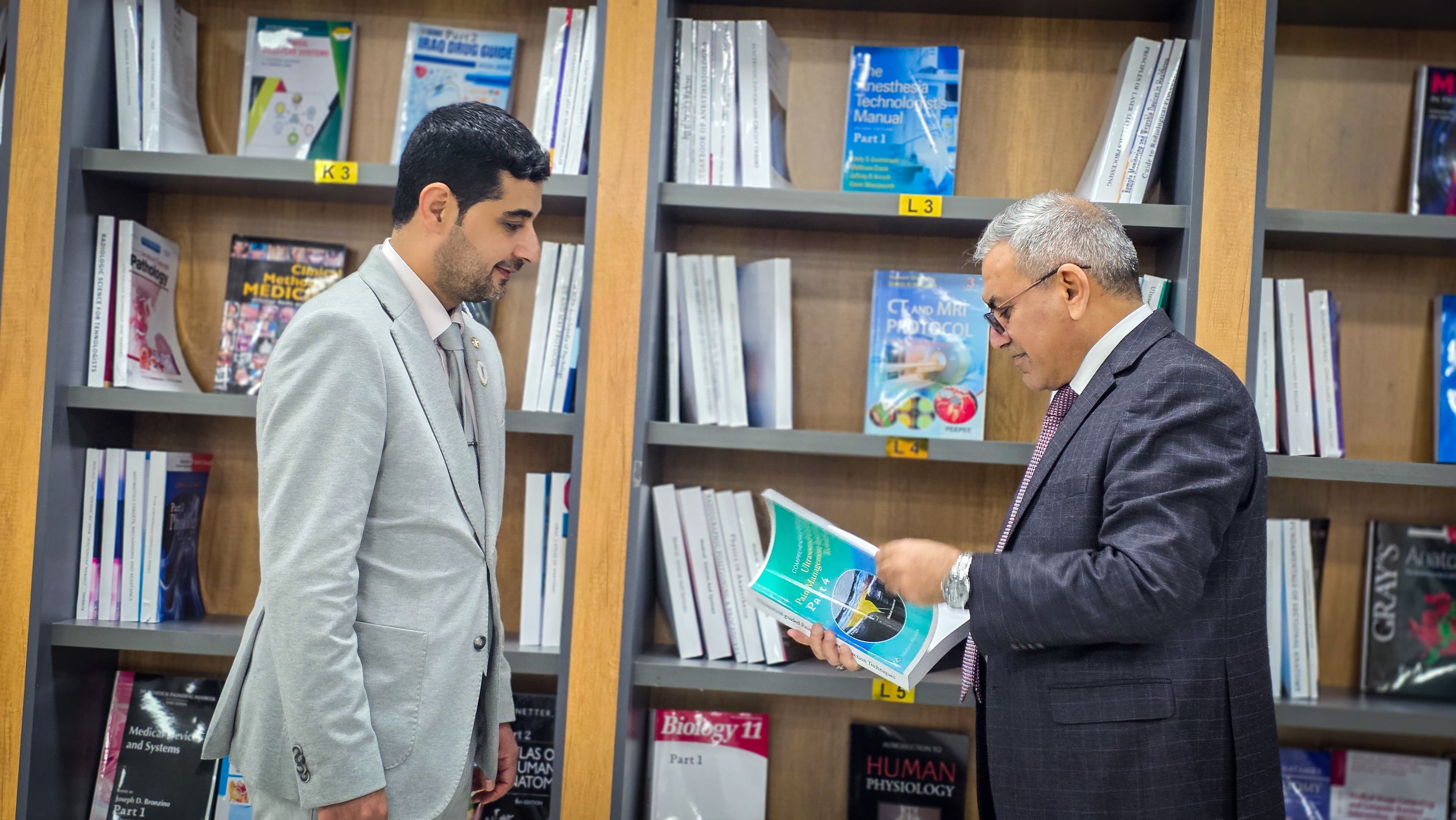 في أجواء أكاديمية مهيبة، افتتح السيد رئيس جامعة العين العراقية مكتبة كلية الصيدلة، برفقته السيد المساعد العلمي لرئيس الجامعة وبحضور السيد عميد كلية الصيدلة والسيد عميد كلية الطب والكادر التدريسي كافة، إلى جانب جمع من طلبة الكلية. ويأتي هذا الافتتاح تأكيدًا لحرص رئاسة الجامعة على دعم البنية العلمية وتعزيز البيئة الأكاديمية بما يخدم المسيرة التعليمية والبحثية.