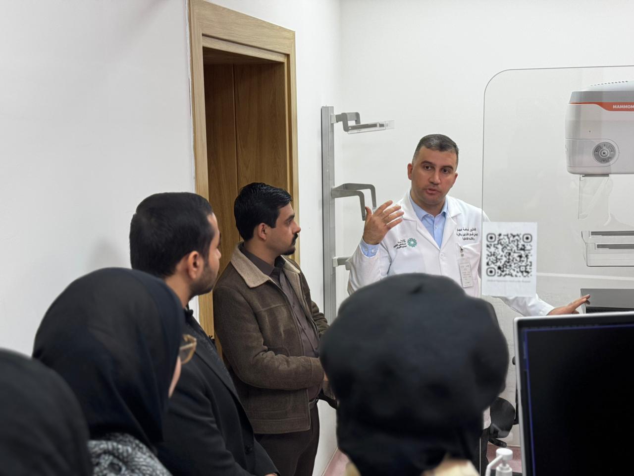 وتضمّن البرنامج جولة ميدانية في وحدات الأشعة التشخيصية والعلاج الإشعاعي، مع تقديم شروحات علمية من قبل الكوادر الطبية المختصة حول دور تقنيات الأشعة في الكشف المبكر عن الأورام وخطط العلاج، فضلاً عن مناقشة التحديات العملية وسبل تطوير الأداء المهني.