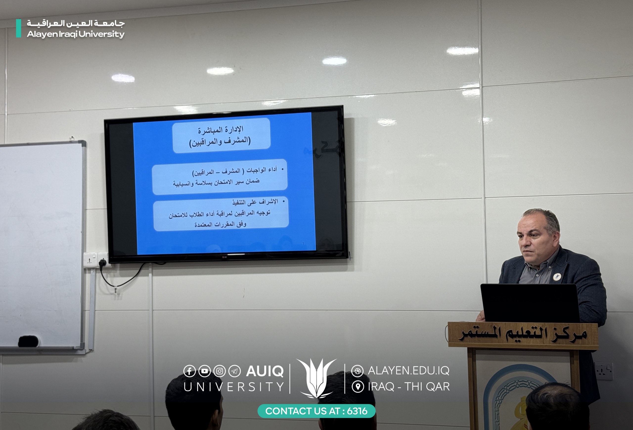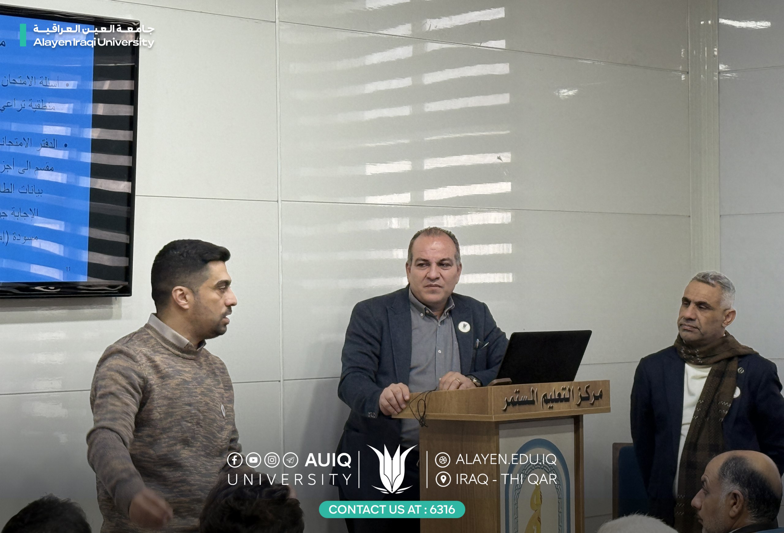 قامت كلية الهندسة في جامعة العين العراقية، وبالتعاون مع مركز التعليم المستمر، ورشةً تدريبية بعنوان «إدارة الامتحانات ومراقبة القاعة الامتحانية»، قدّمها كلٌّ من أ.م.د سرمد كاظم ذياب، وم.د مرتضى دغيم عبدالله، وأ.م.د ناجح يوسف العلي.
