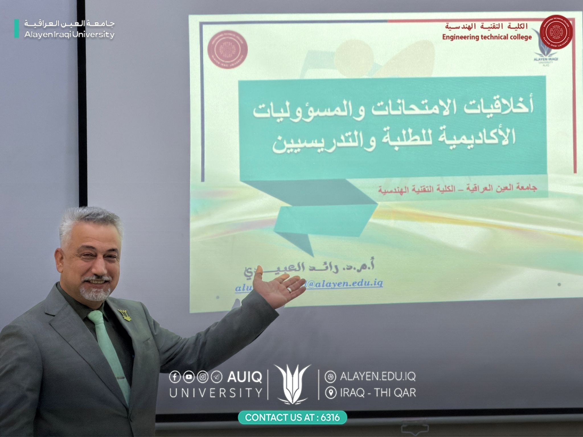 وتأتي هذه الورشة في إطار حرص جامعة العين العراقية على ترسيخ مبادئ الالتزام والمسؤولية الأكاديمية، وتهيئة بيئة امتحانية منضبطة تدعم جودة التعليم الجامعي.