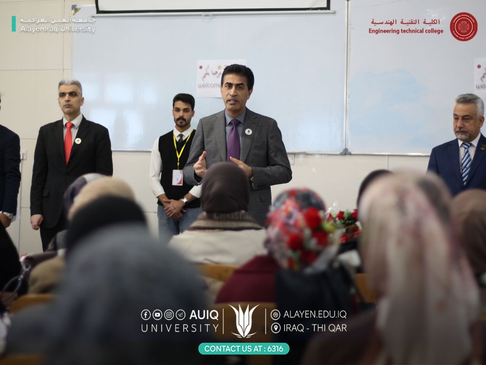 اختتمت الكلية التقنية الهندسية بجامعة العين العراقية استقبال طلبة المرحلة الأولى في قسم هندسة تقنيات الوقود والطاقة، حيث رحّب بهم عميد الكلية أ.م.د. رافد صكبان عبود، يرافقه معاون العميد للشؤون العلمية أ.م.د. رائد نصر العبيدي ورئيس القسم أ.م.د. أحمد نجم نمر، متمنين لهم بداية موفقة ومسيرة جامعية ناجحة