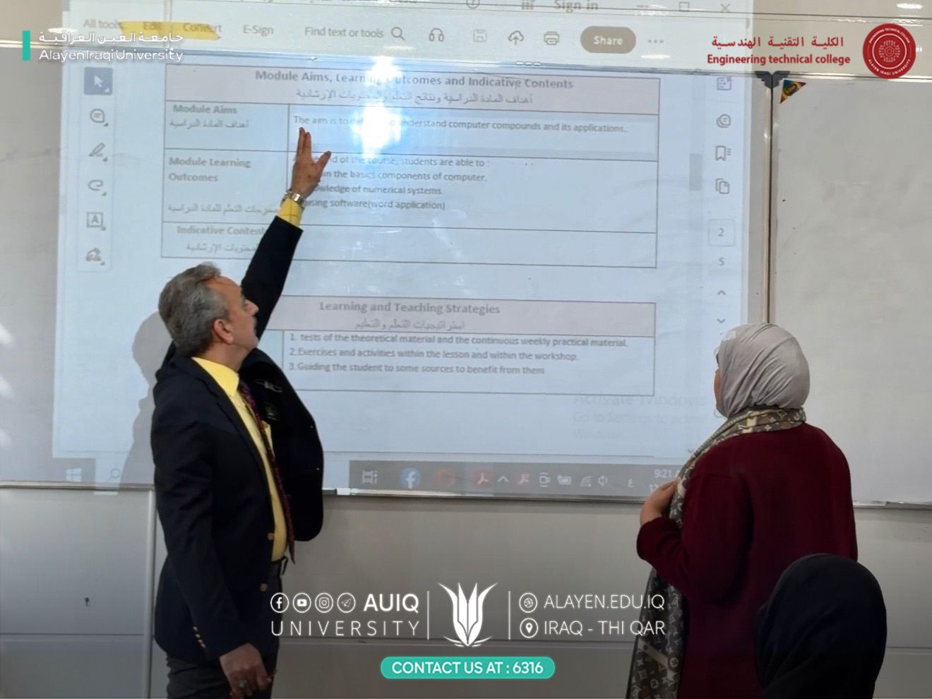 اقامت الكلية التقنية الهندسية في جامعة العين العراقية اللجنة المركزية للاعتماد المؤسسي والبرامجي التقني الهندسي في الكلية التقنية الهندسية محاضرة بعنوان «الوصف الأكاديمي للمواد الدراسية في مسار بولونيا الدراسي»، القاها أ.م.د. احمد نجم نمر رئيس قسم هندسة تقنيات الوقود والطاقة وعضو اللجنة المركزية للاعتماد المؤسسي و البرامجي للتقنية الهندسية استهدفت طلبة المرحلة الاولى لقسم هندسة تقنيات الوقود والطاقة تماشيًا مع متطلبات نظام بولونيا الدراسي.