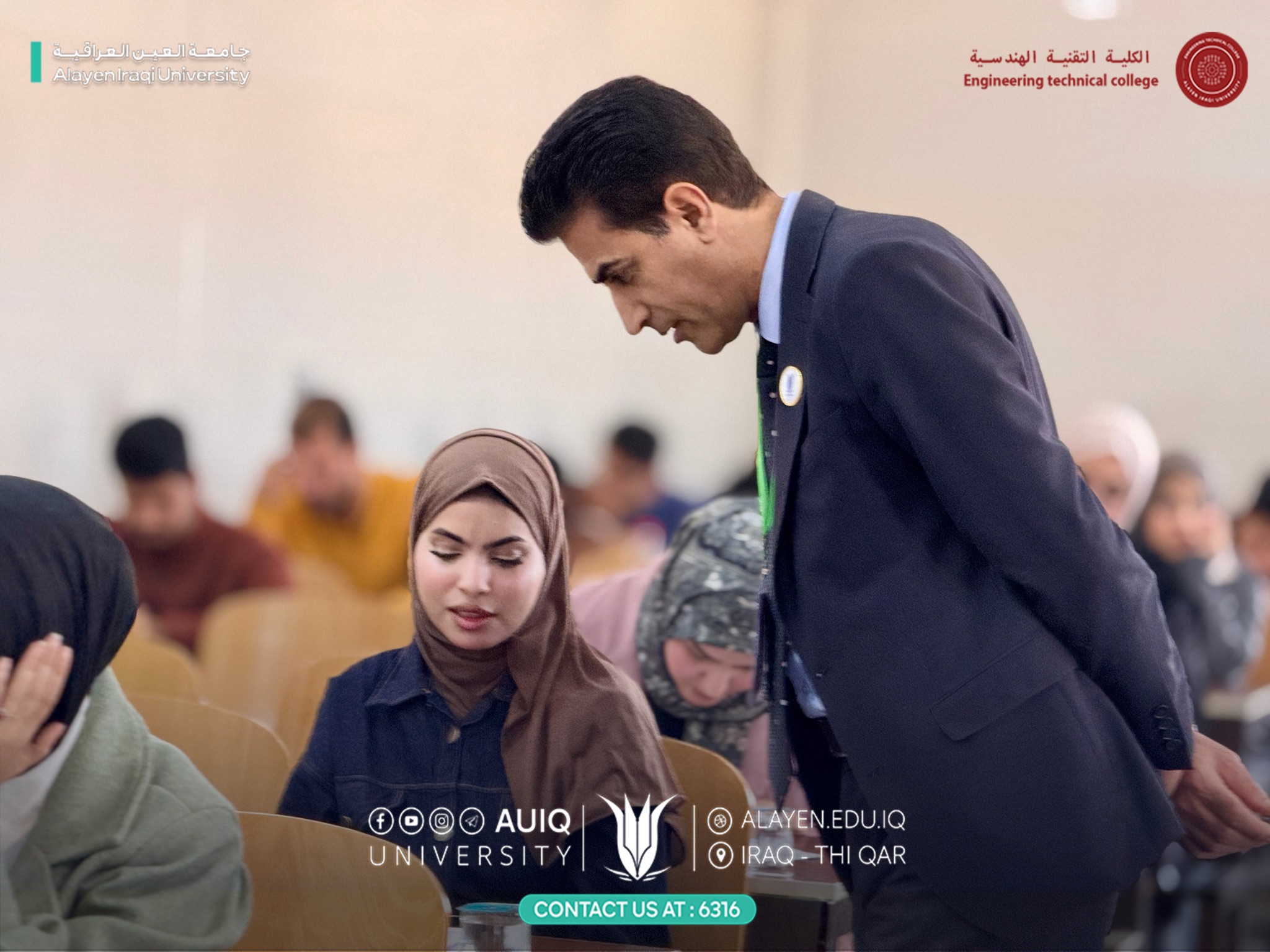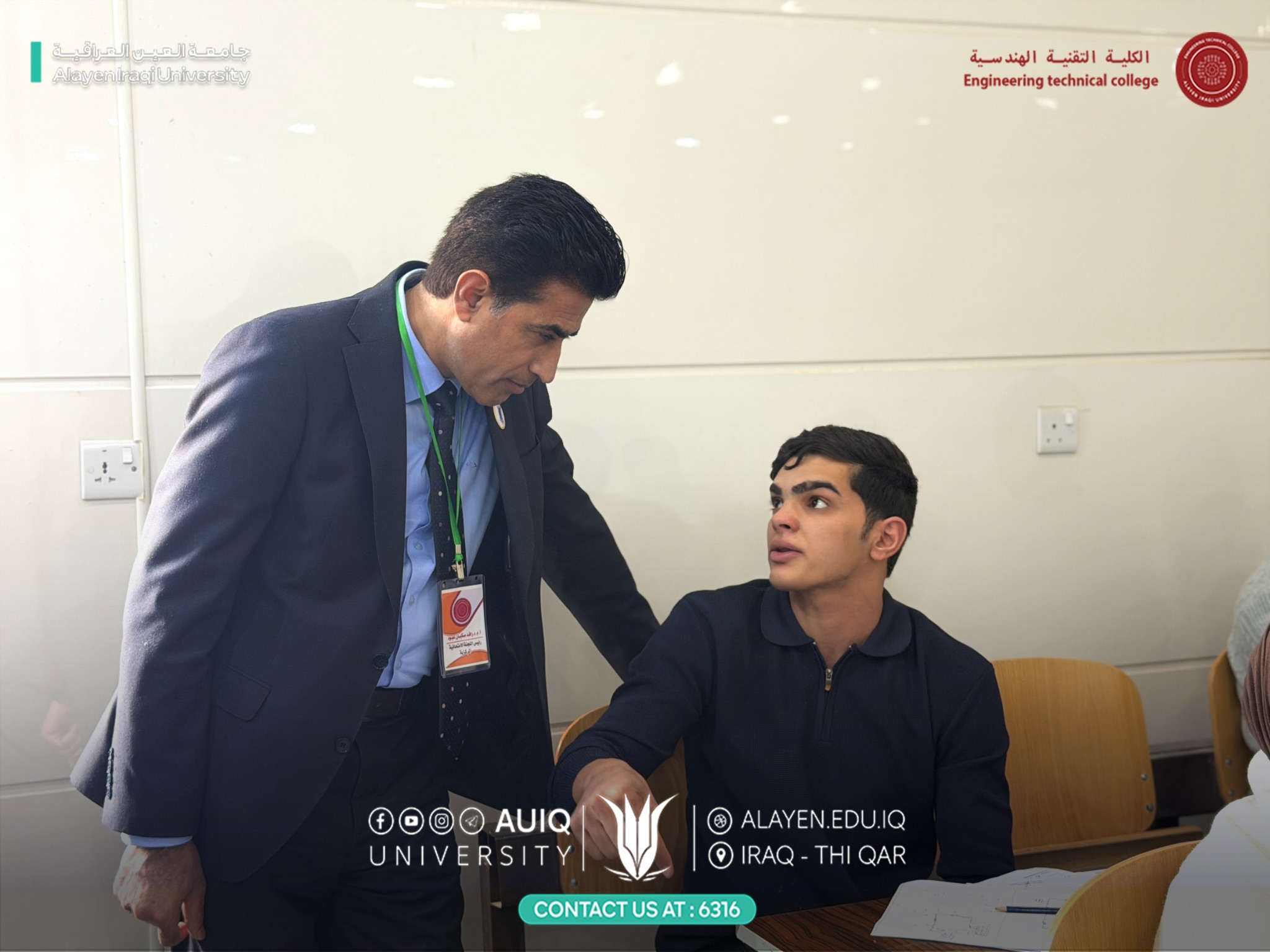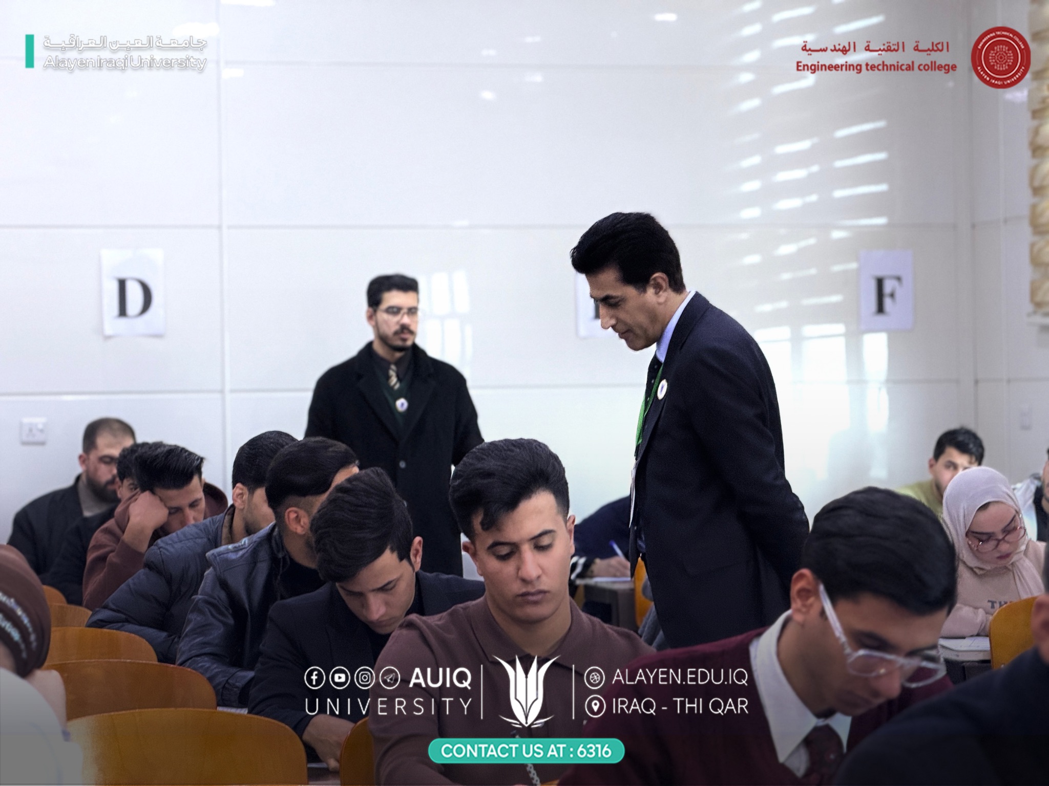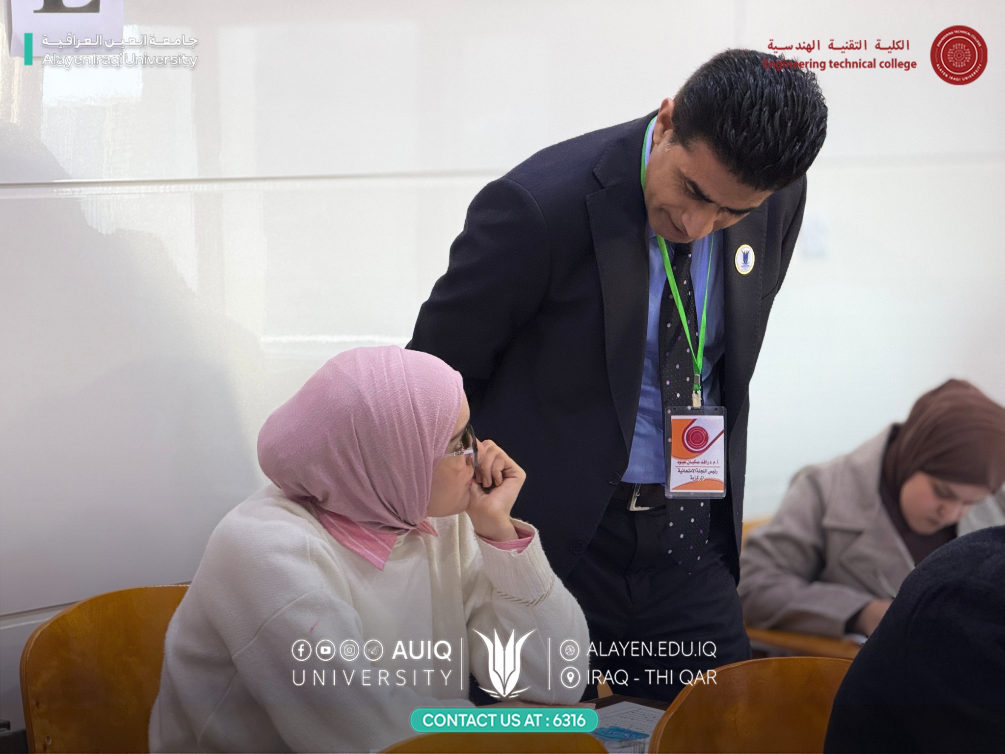 أجرى السيد عميد الكلية التقنية الهندسية، أ.م.د. رافد صكبان عبود، جولة ميدانية تفقدية واسعة شملت القاعات الامتحانية واللجان الفرعية، وذلك لمتابعة سير الامتحانات النهائية لطلبة المرحلتين الثانية والثالثة المشمولين بـ "مسار بولونيا" العالمي. وتأتي هذه الجولة في إطار حرصه الشخصي ومتابعة عمادة الكلية المستمرة لضمان بيئة امتحانية مثالية تتوافق مع معايير الجودة الأكاديمية الدولية.