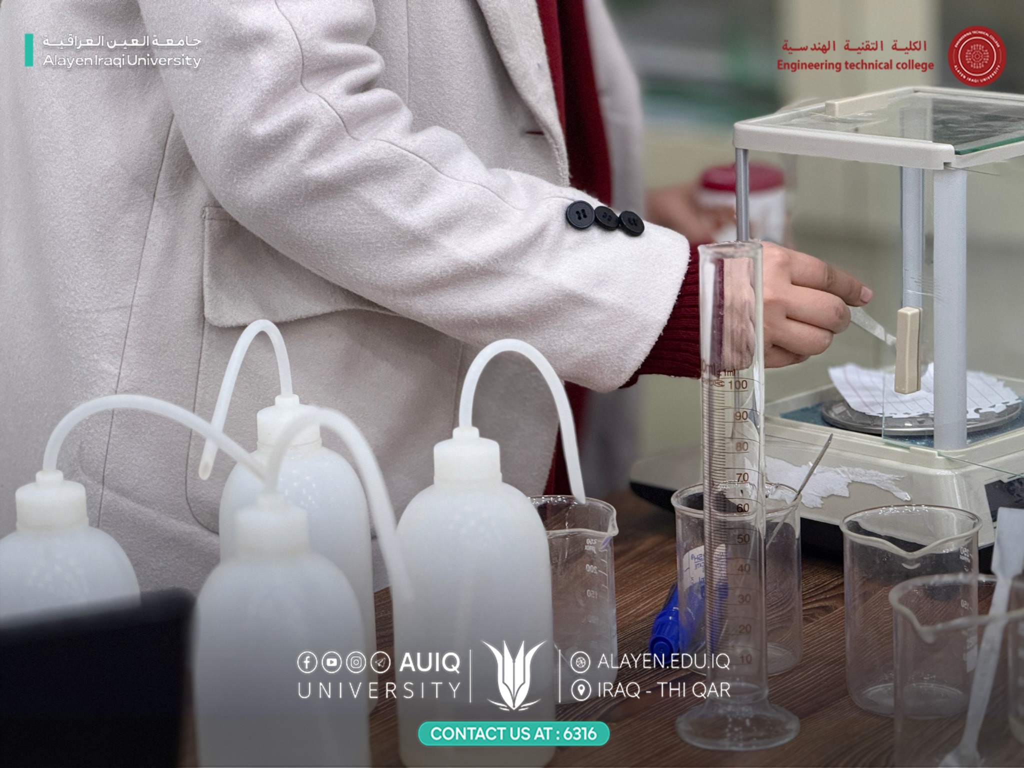 ضمن الجانب العملي لمادة الكيمياء التحليلية لطلبة المرحلة الأولى في قسم تقنيات الوقود والطاقة، أُجريت تجربة مختبرية بعنوان تحضير المحلول القياسي (Standard Solution)، بإشراف تدريسي المادة م.م. علي جعفر.
