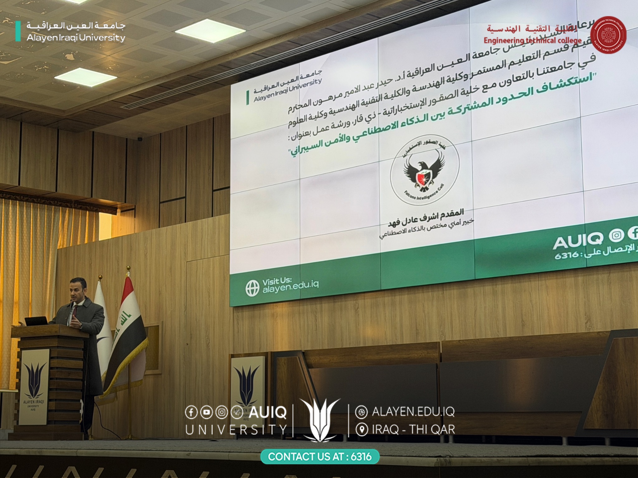 برعاية رئيس جامعة العين العراقية أ.د. حيدر عبد الأمير مرهون، نظم قسم التعليم المستمر و الكلية التقنية الهندسية وكلية الهندسة وكلية العلوم، وبالتعاون مع خلية الصقور الاستخبارية – ذي قار، ورشة عمل علمية بعنوان:
