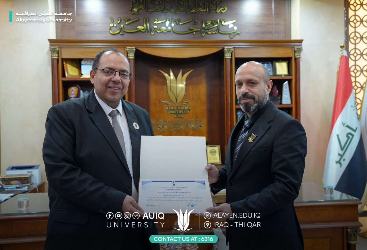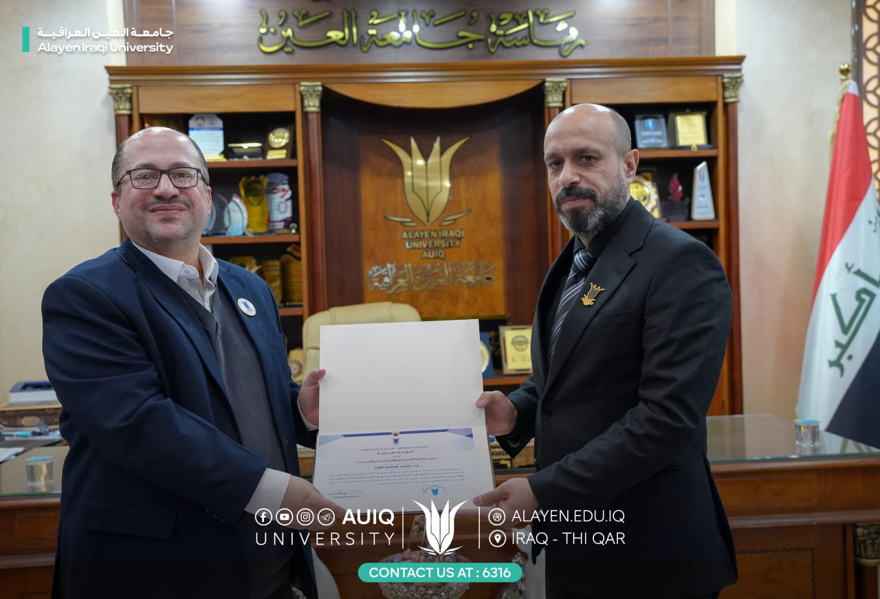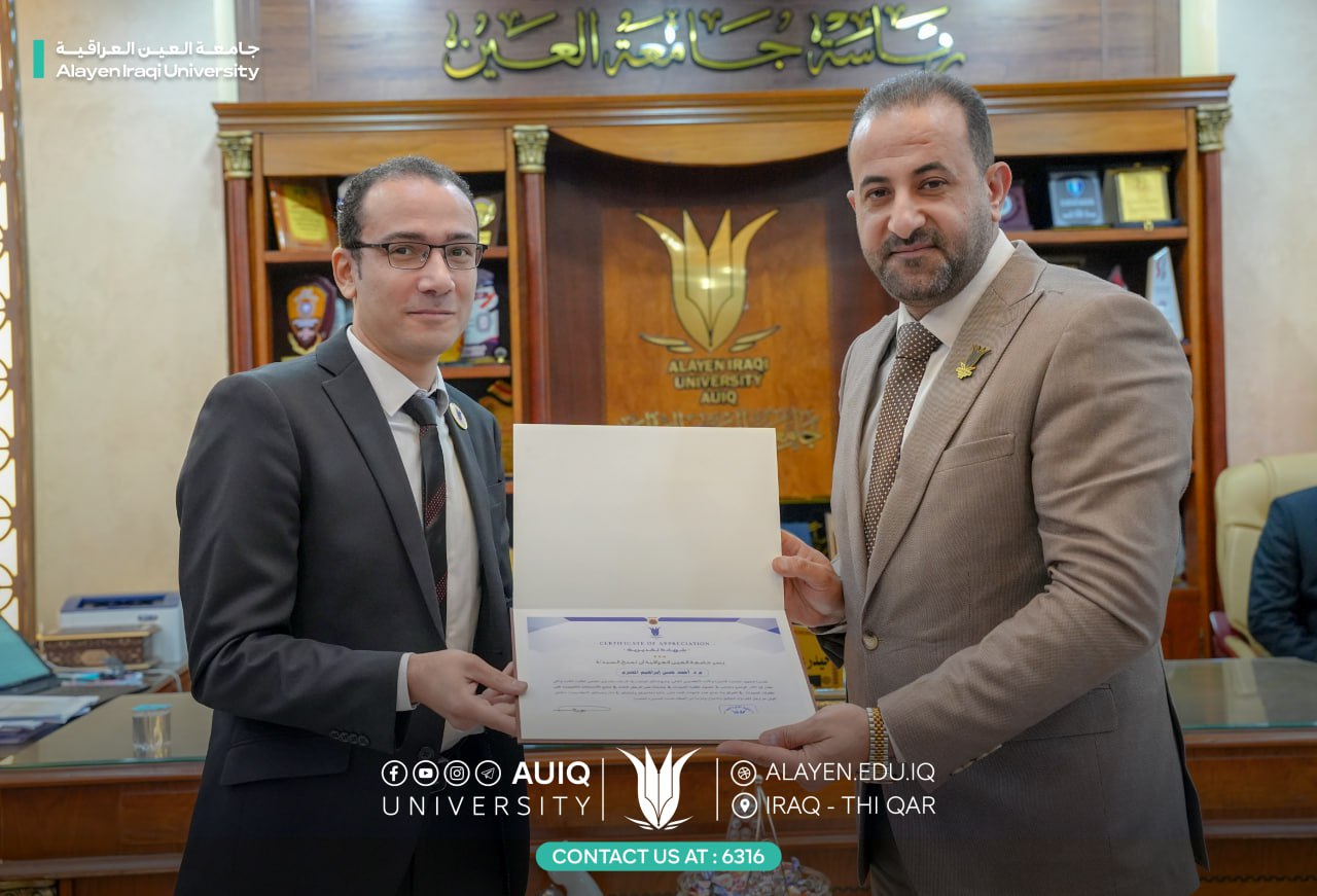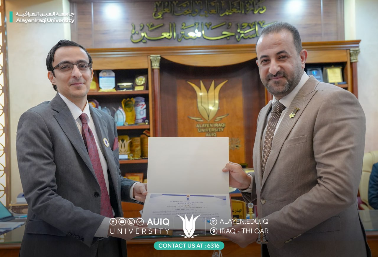 تتقدّم كلية الصيدلة – جامعة العين بأحر التهاني لتدريسيي المواد التقويمية بمناسبة تكريمهم من قبل السيد رئيس الجامعة الأستاذ الدكتور حيدر عبد الأمير مرهون، بعد تحقيقهم المركز الثالث على مستوى العراق في الامتحانات الوطنية الموحدة.