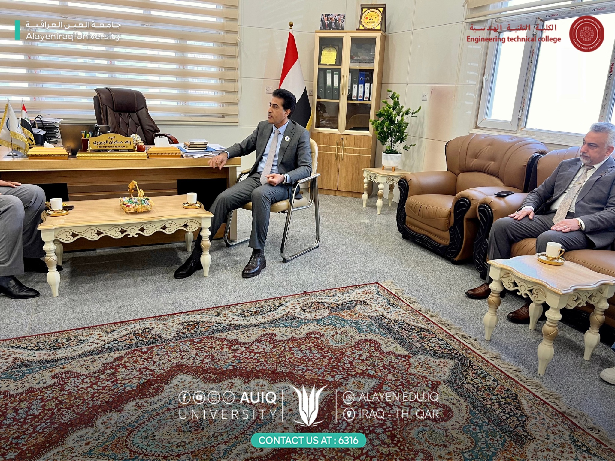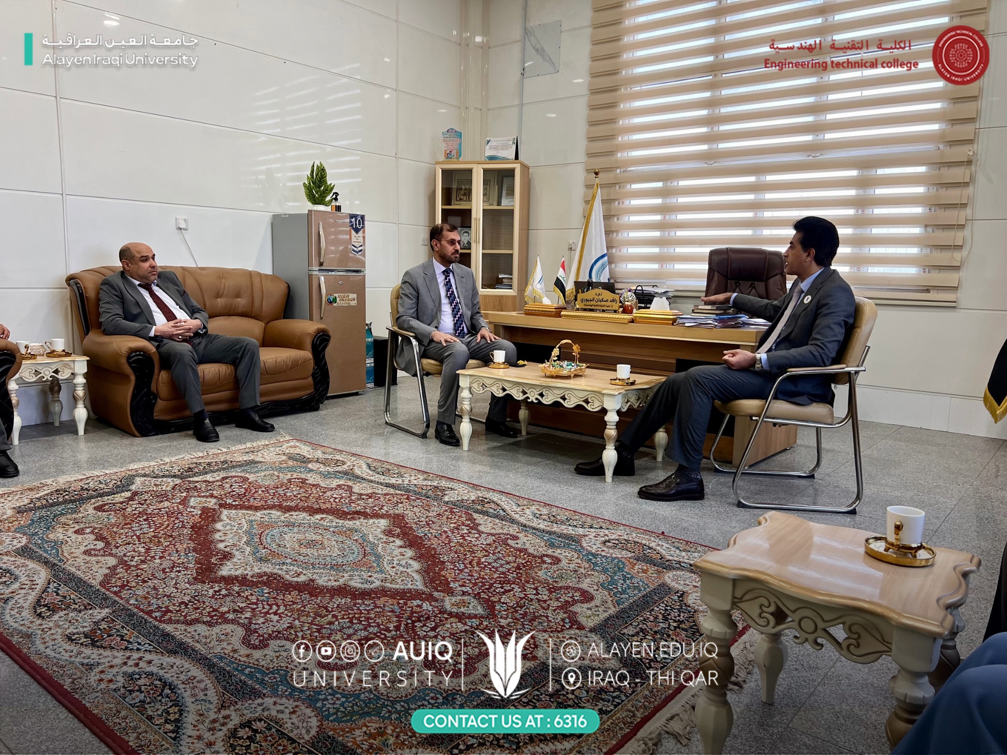 بغية دعم التعاون بين مؤسسات التعليم العالي ومؤسسات الدولة، اجتمع عميد الكلية التقنية الهندسية أ.م.د. رافد صكبان عبود ومعاون العميد لشؤون العلمية أ.م.د. رائد نصر العبيدي مع وفد من محافظة ذي قار ممثلًا بمعاون المحافظ للتخطيط الأستاذ رزاق العلي، لمناقشة سبل التعاون وبناء شراكات استراتيجية في مجالات الأمن السيبراني والحوكمة الإلكترونية.