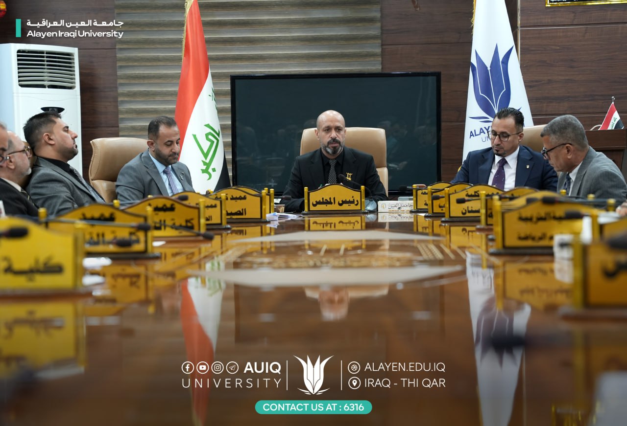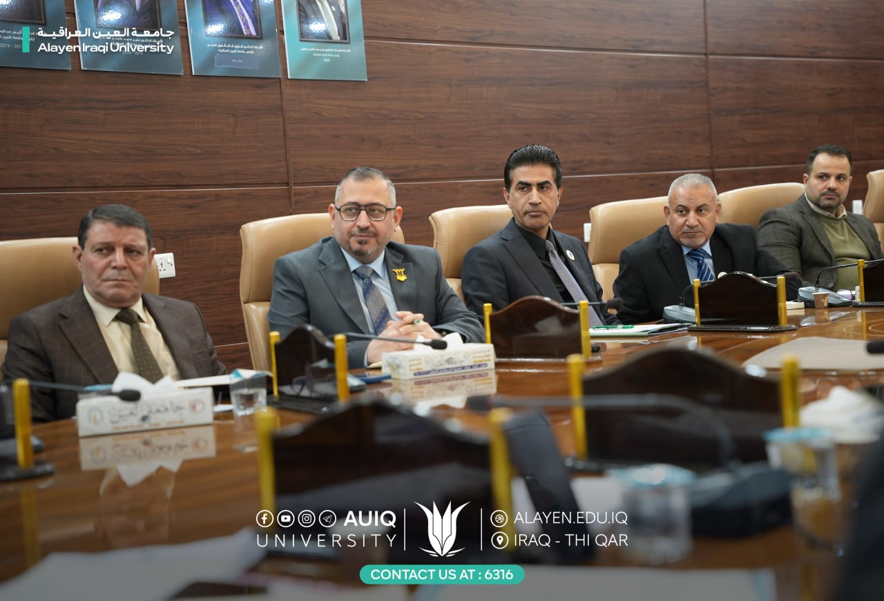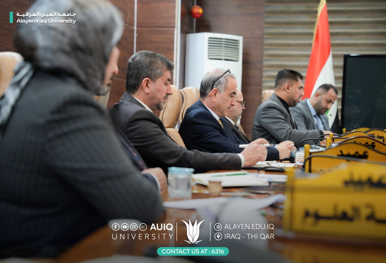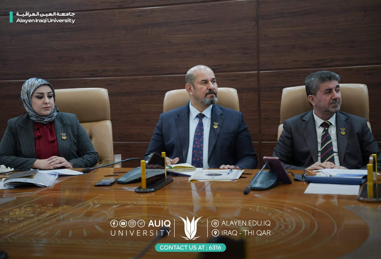 عقدت جامعة العين العراقية جلستها السابعة برئاسة الأستاذ الدكتور حيدر عبد الأمير مرهون رئيس الجامعة وبحضور أعضاء المجلس لمناقشة عدد من القضايا الأكاديمية والتنظيمية