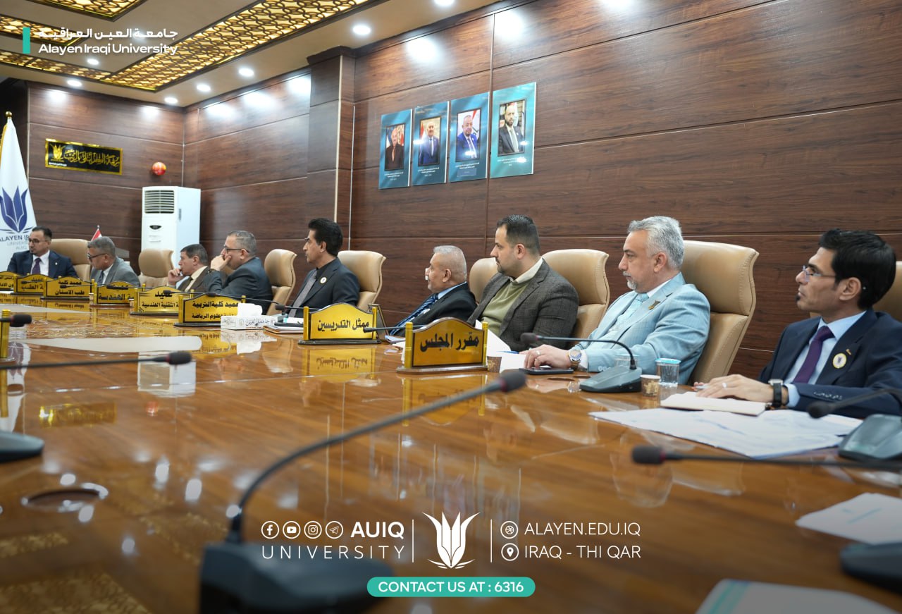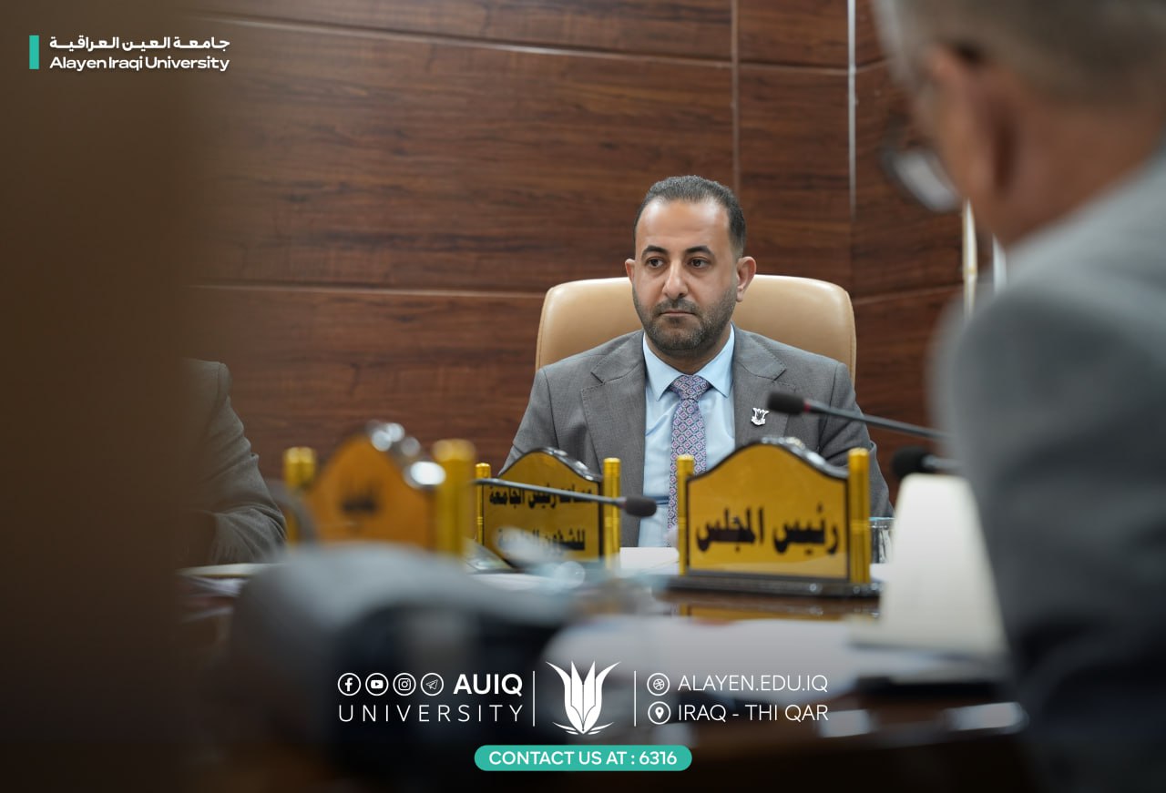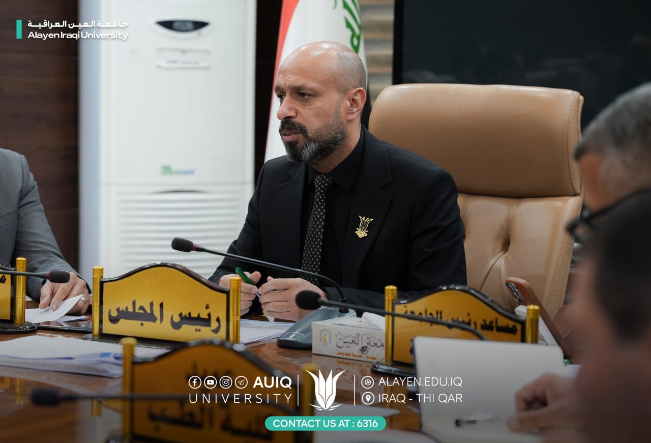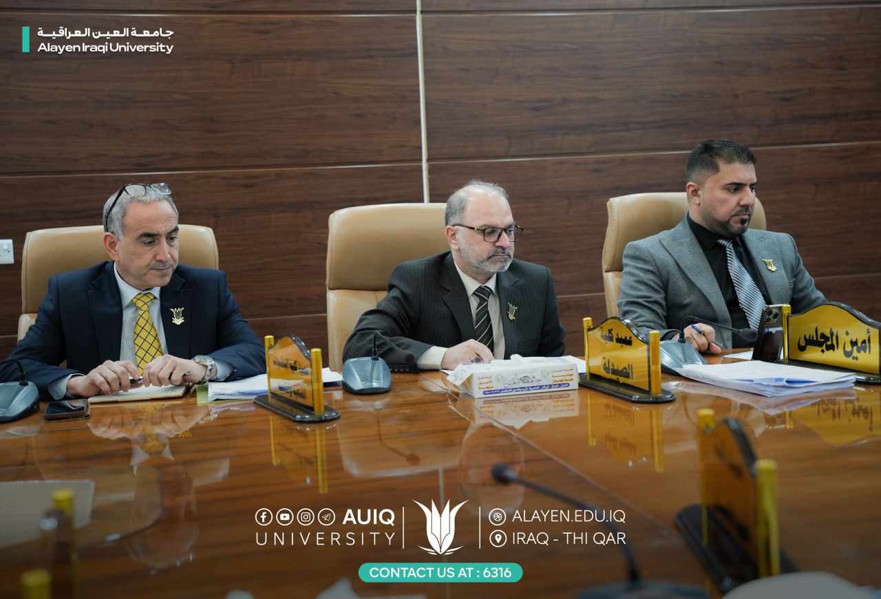 عقدت جامعة العين العراقية جلستها السابعة برئاسة الأستاذ الدكتور حيدر عبد الأمير مرهون رئيس الجامعة وبحضور أعضاء المجلس لمناقشة عدد من القضايا الأكاديمية والتنظيمية