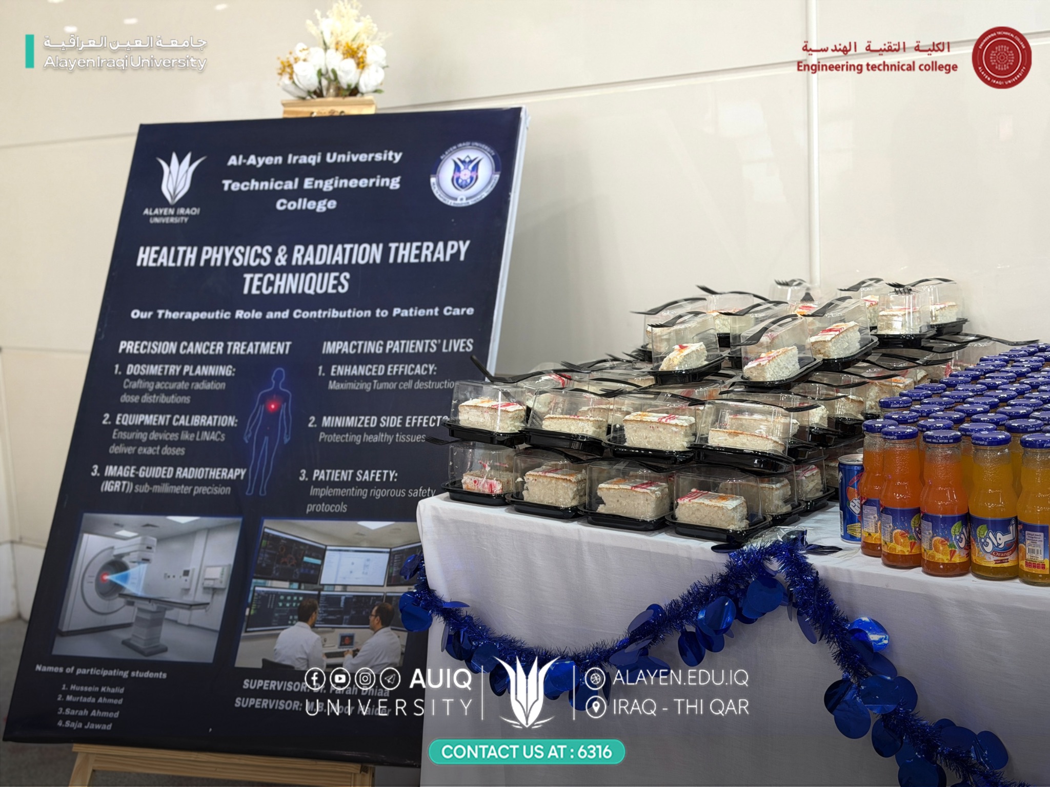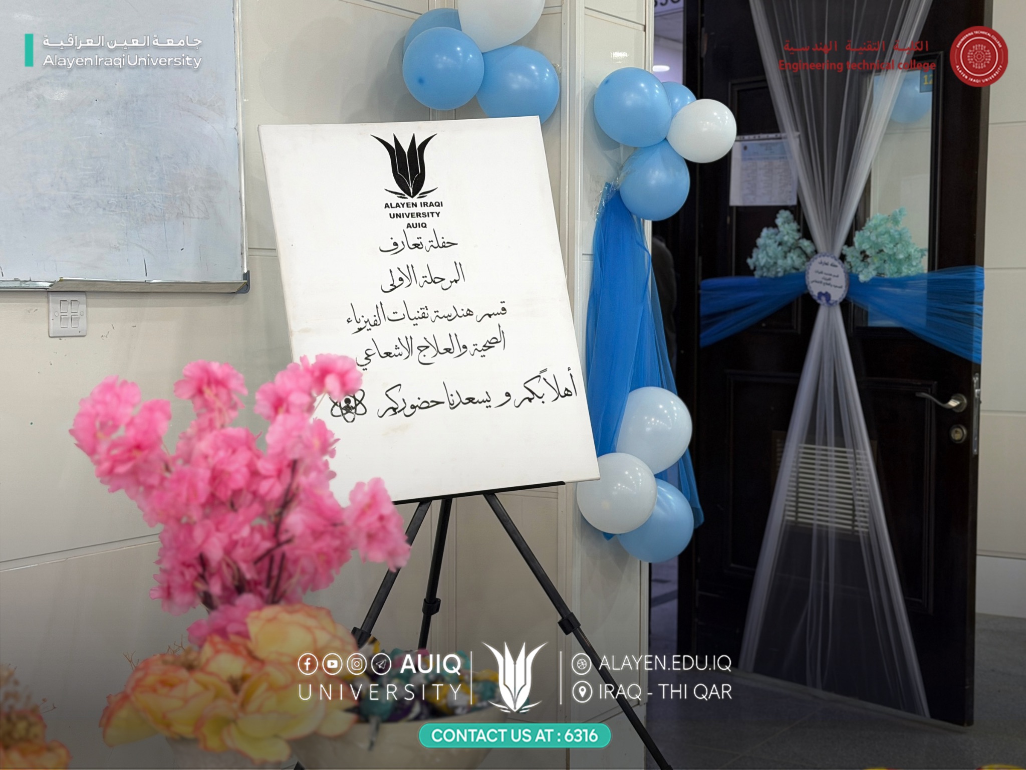 احتفل قسم هندسة تقنيات الفيزياء الصحية والعلاج الاشعاعي بحفل تعارف طلبة المرحلة الاولى بحضور معاون العميد لشوون العلمية أ.م.د. رائد نصر العبيدي وبحضور رئيس قسم هندسة تقنيات الفيزياء الصحية والعلاج الاشعاعي م.د. فرح ضياء رضا و رؤوساء اقسام الكلية التقنية الهندسية والكادر التدريسي .