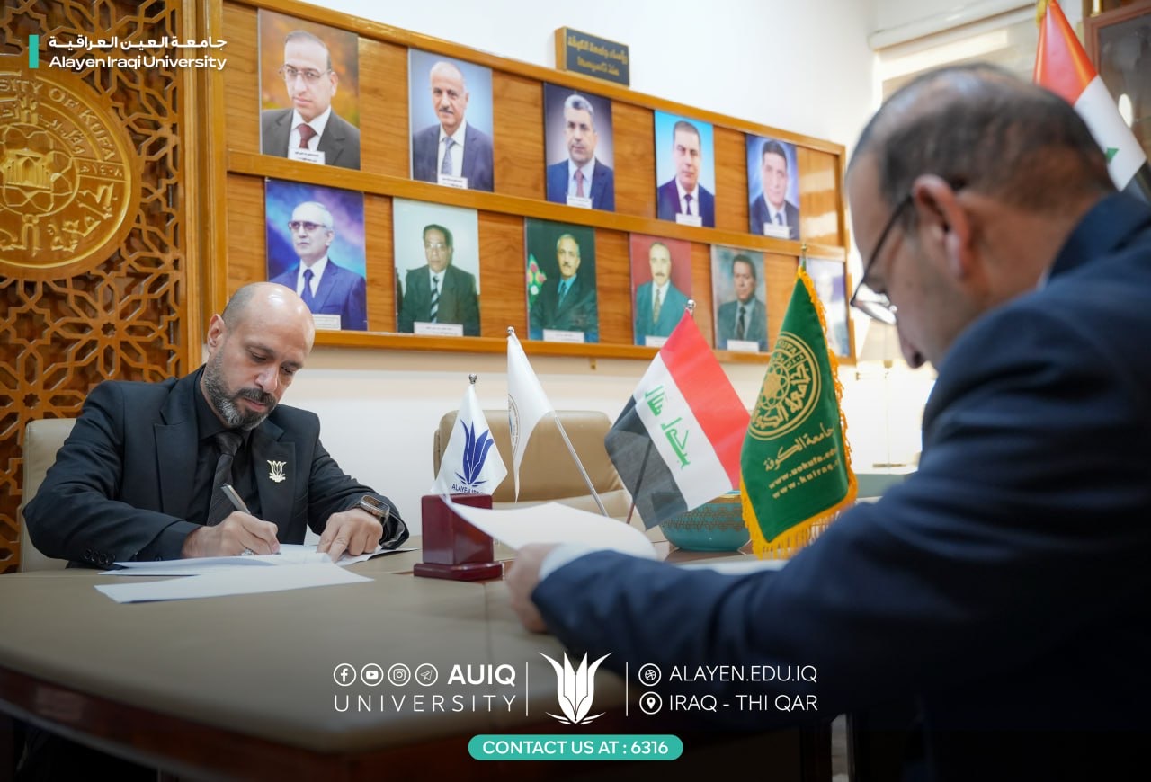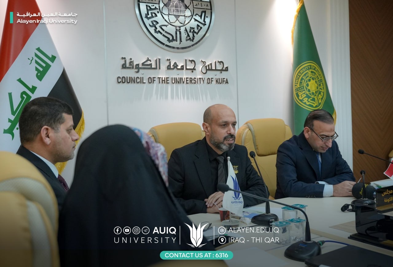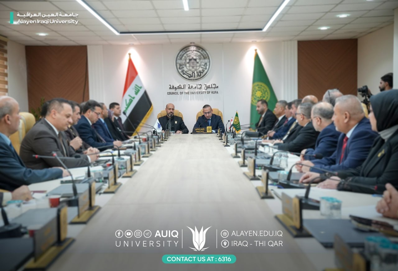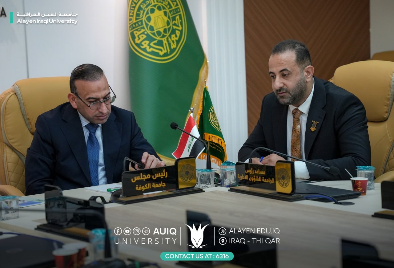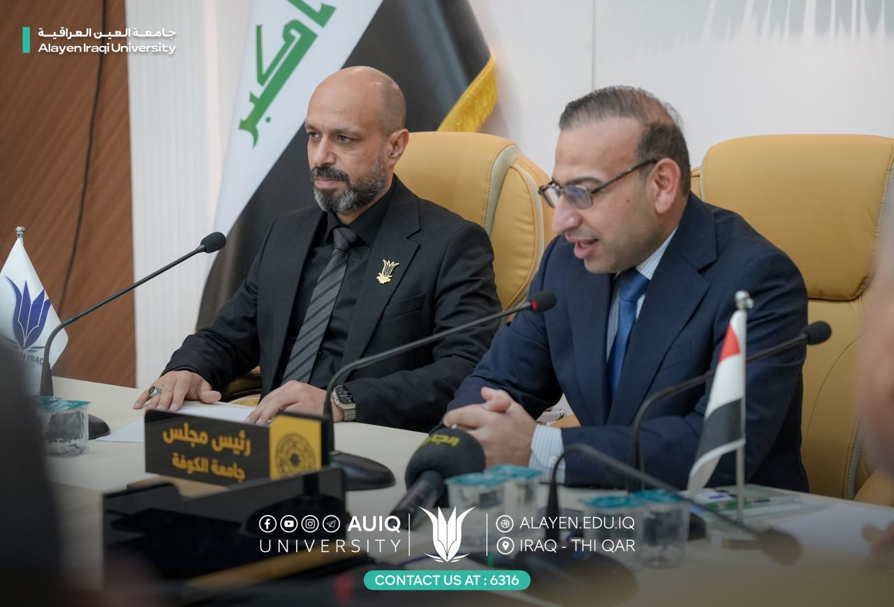 أبرمت جامعة العين العراقية اتفاقية تعاون علمي مع جامعة الكوفة متمثلةً برئيس الجامعة الأستاذ الدكتور حيدر عبد الأمير مرهون إلى جانب رئيس جامعة الكوفة الأستاذ الدكتور علاء ناجي المولى وبحضور مجلس جامعة العين العراقية ومجلس جامعة الكوفة.