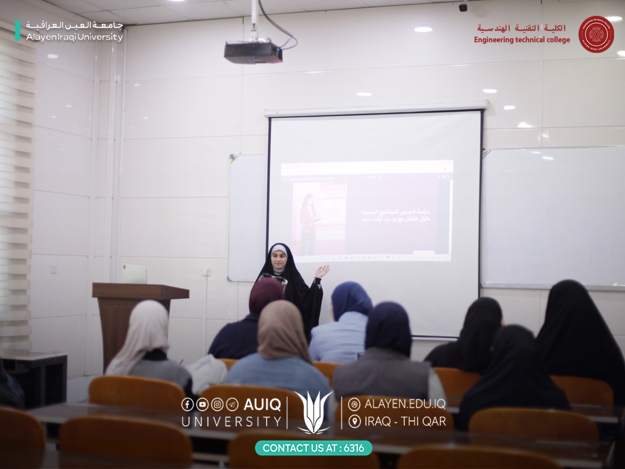 أقامت الكلية التقنية الهندسية وحدة شؤون المرأة ورشة عمل بعنوان «دراسة الجدوى للمشاريع النسوية: دليل شامل»، قدّمتها م.ب آيات حمد، وذلك في إطار دعم المبادرات التنموية وتعزيز دور المرأة في المجال الاقتصادي، من خلال تمكينها بالمعرفة العلمية والعملية اللازمة لتخطيط وإدارة المشاريع بصورة ناجحة ومستدامة.