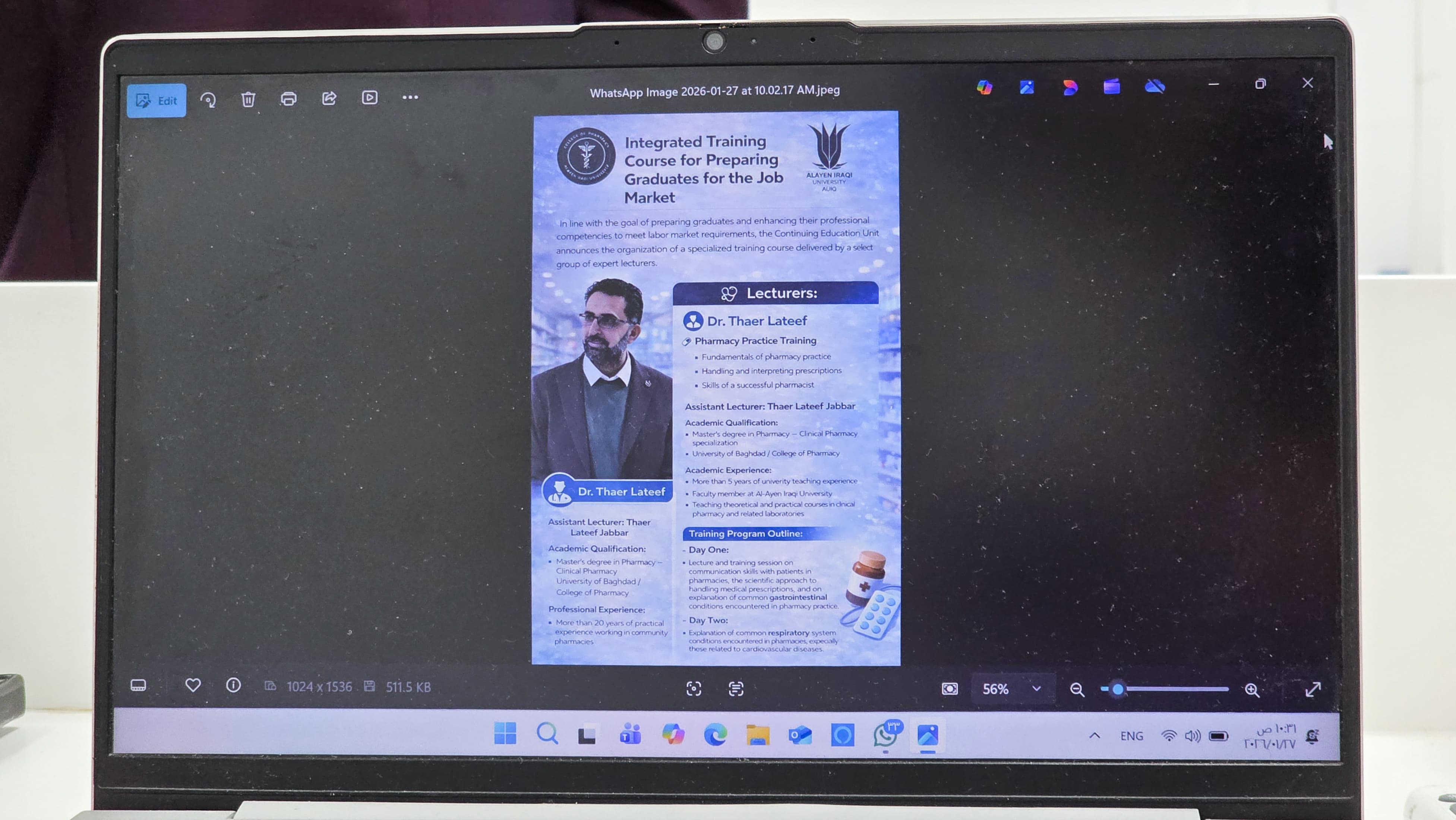 برعاية وإشراف عميد كلية الصيدلة السيد (م.د. حيدر حامد الأنبارِي)، تواصلت فعاليات الدورة التدريبية لتأهيل الخريجين لسوق العمل لليوم الخامس على التوالي، والتي يقيمها مركز التعليم المستمر في جامعة العين العراقية بالتعاون مع وحدة التعليم المستمر في كلية الصيدلة، وسط حضور وتفاعل مميزين من الطلبة والخريجين.