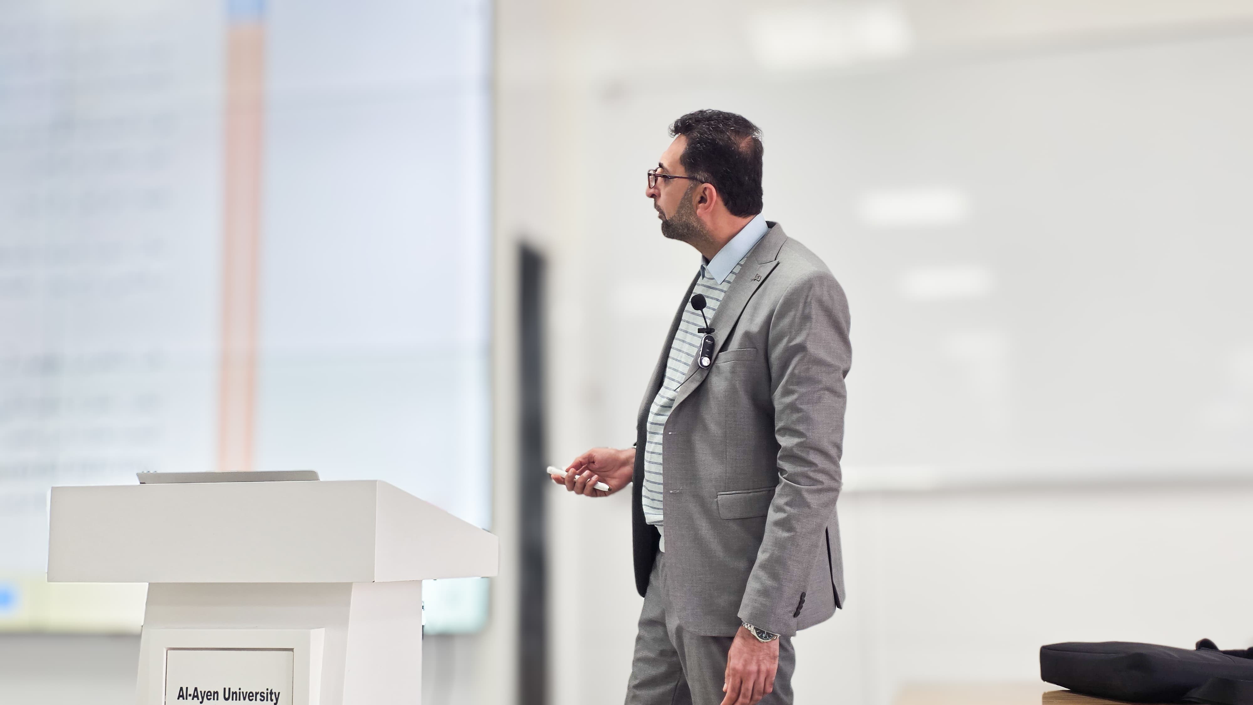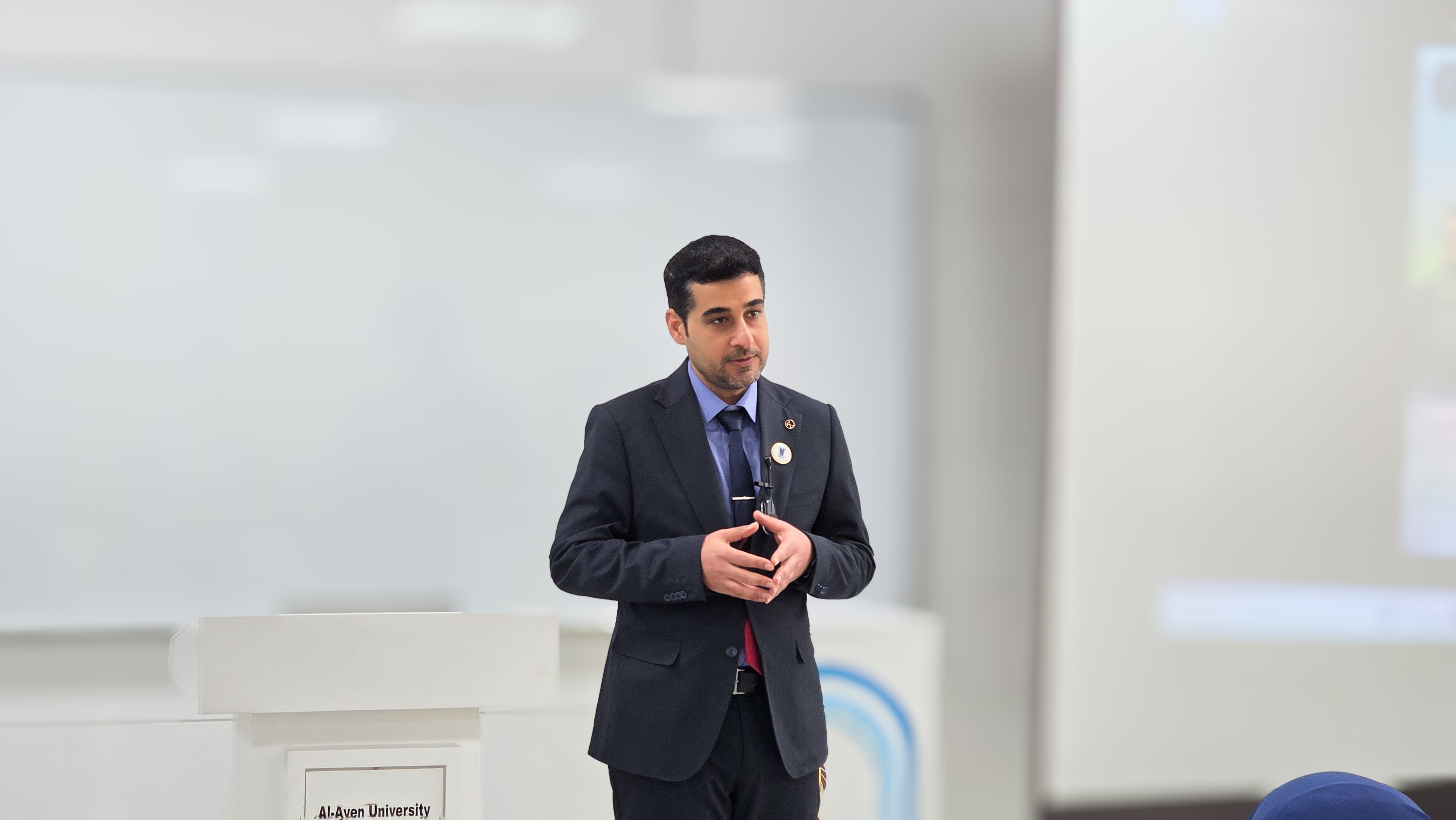 وفي محور المهارات المهنية والتسويق، ألقى م.م. حسين حميد حيال (ماجستير صيدلة في العقاقير الطبية / جامعة البصرة ) محاضرة عن مهارات التواصل والبيع والتسويق، شملت التواصل مع الزبائن، وتقنيات البيع الاحترافية، ومبادئ التسويق الطبي، مع أمثلة تطبيقية ترتبط بواقع العمل الصيدلاني.