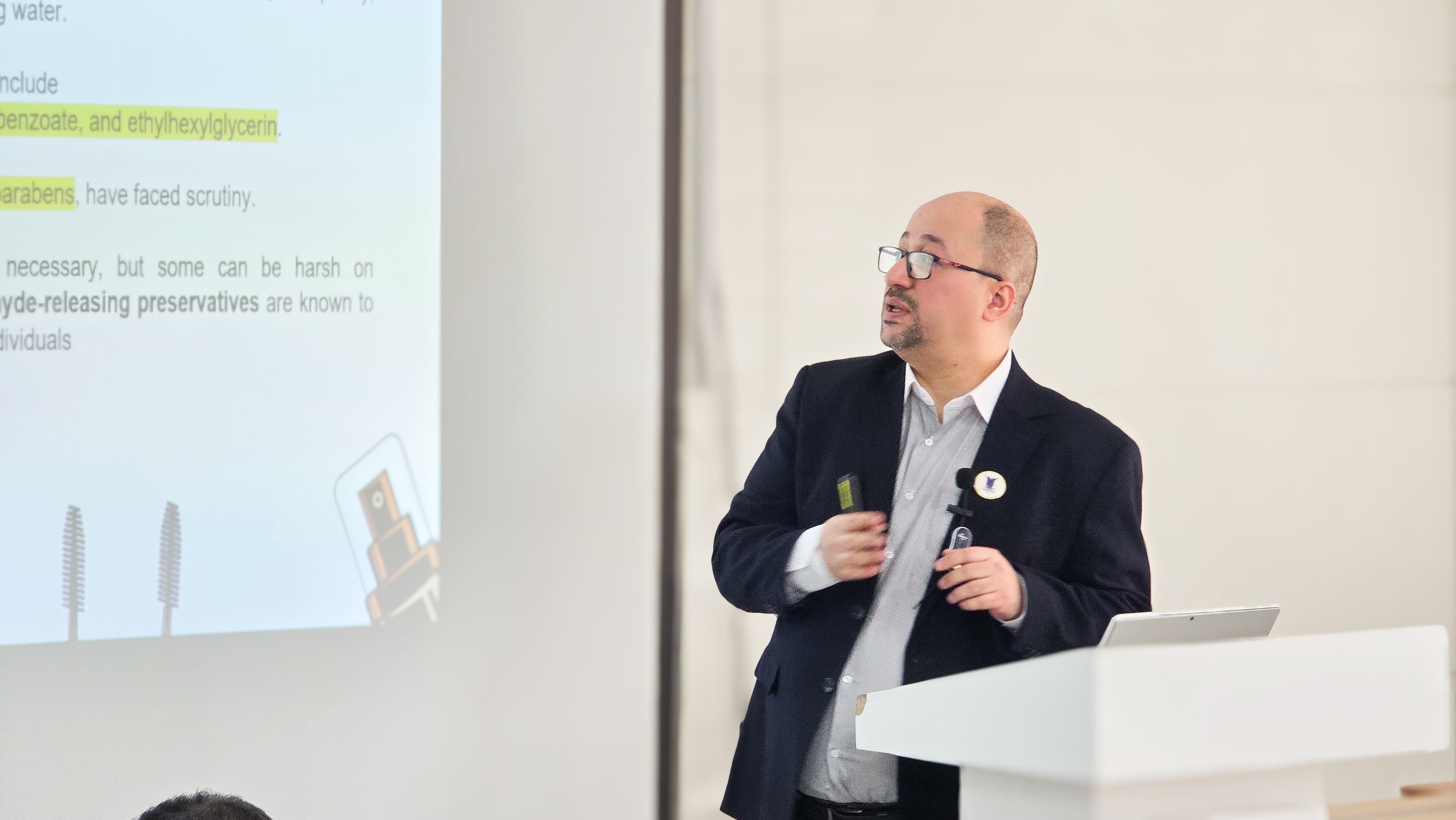 وشهدت الدورة أيضًا سلسلة محاضرات تخصصية في مجال مستحضرات التجميل قدمها د. سامر خالد علي (دكتوراه في الصيدلة، اختصاص الصيدلانيات، جامعة بغداد/كلية الصيدلة)، حيث ركزت على أنواع مستحضرات التجميل، واختيار المنتج المناسب، والإرشاد الصحيح للزبائن بما يعزز سلامة الاستخدام ويرتقي بخدمة المستفيدين.