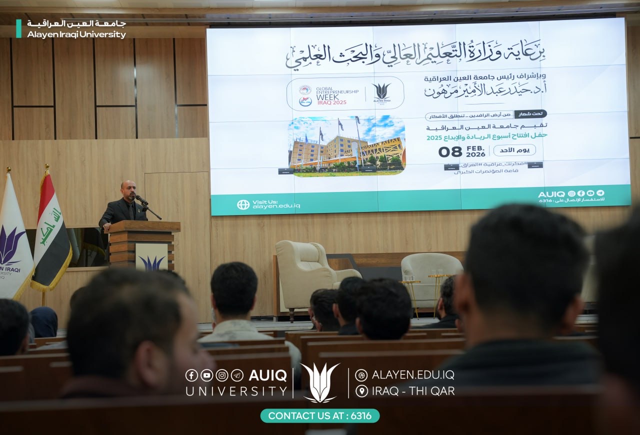 افتتحت جامعة العين العراقية،الأحد ٨ شباط ٢٠٢٦، أسبوع الريادة بحضور رئيس جامعة العين العراقية الأستاذ الدكتور حيدر عبد الأمير مرهون، النائب الأول لمحافظ ذي قار الأستاذ رزاق كشيش الغزي وبمشاركة واسعة وفاعلة من طلبة الجامعة.