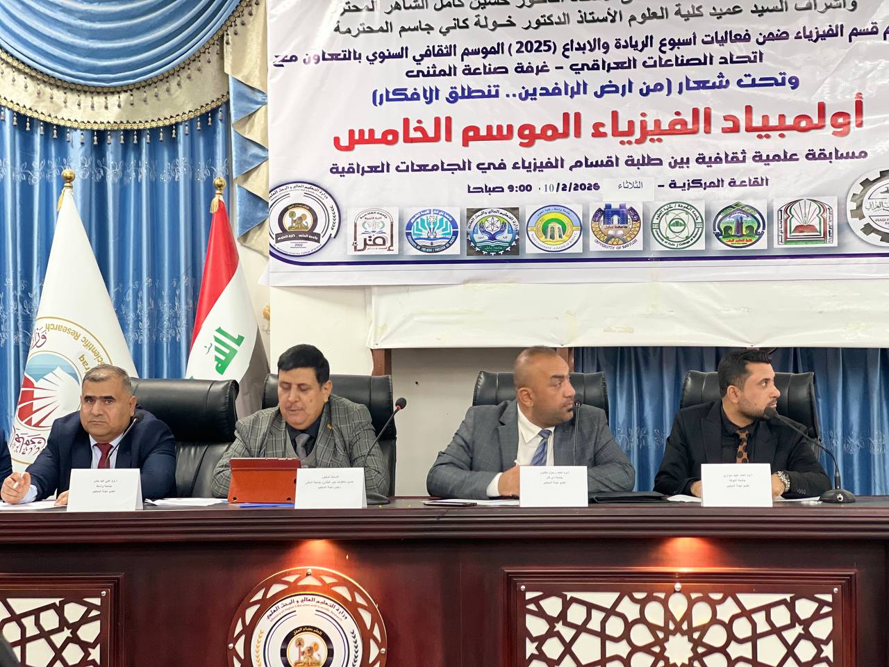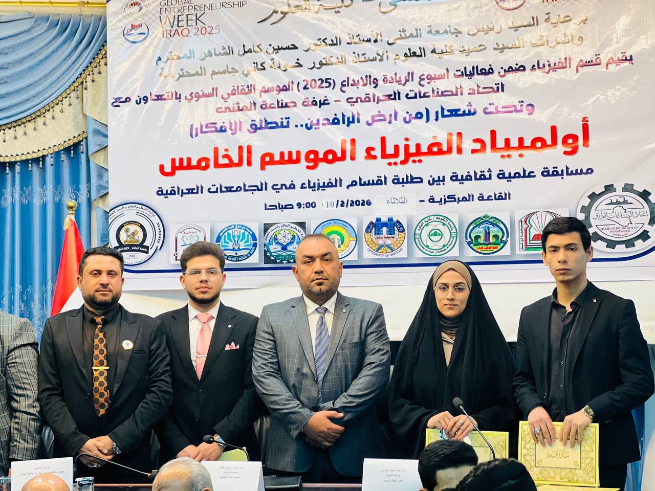 طلبة قسم الفيزياء في كلية التربية جامعة العين العراقية يشاركون في أولمبياد الفيزياء – الموسم الخامس، الذي أُقيم في كلية العلوم جامعة المثنى، في إطار دعم الأنشطة العلمية وتنمية روح المنافسة الأكاديمية بين الطلبة على مستوى الجامعات.