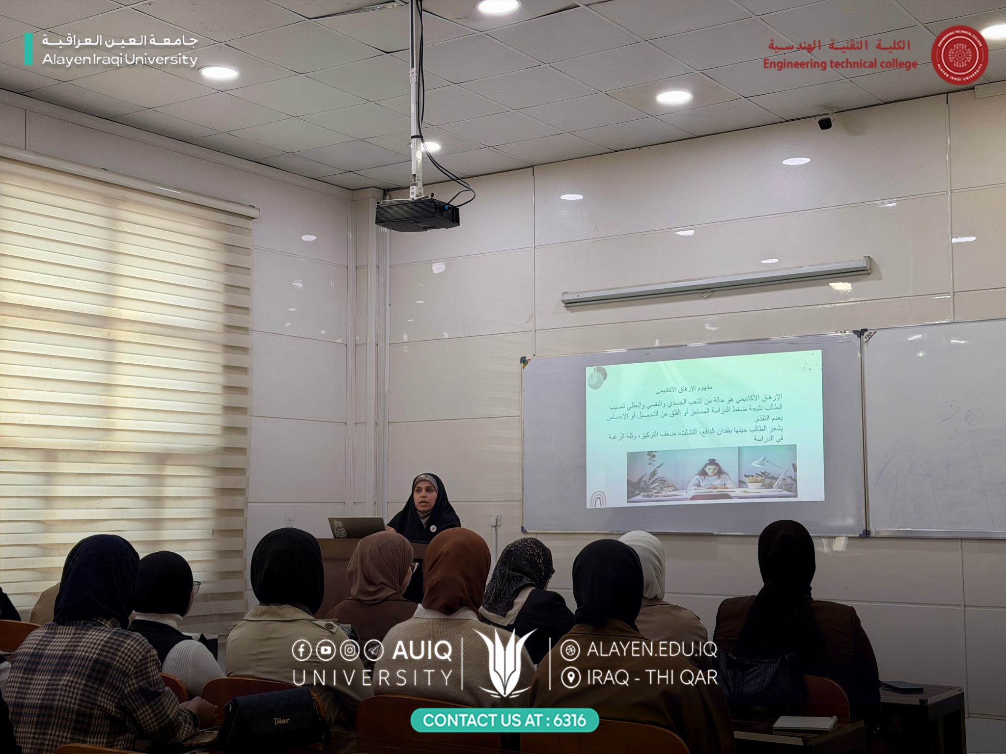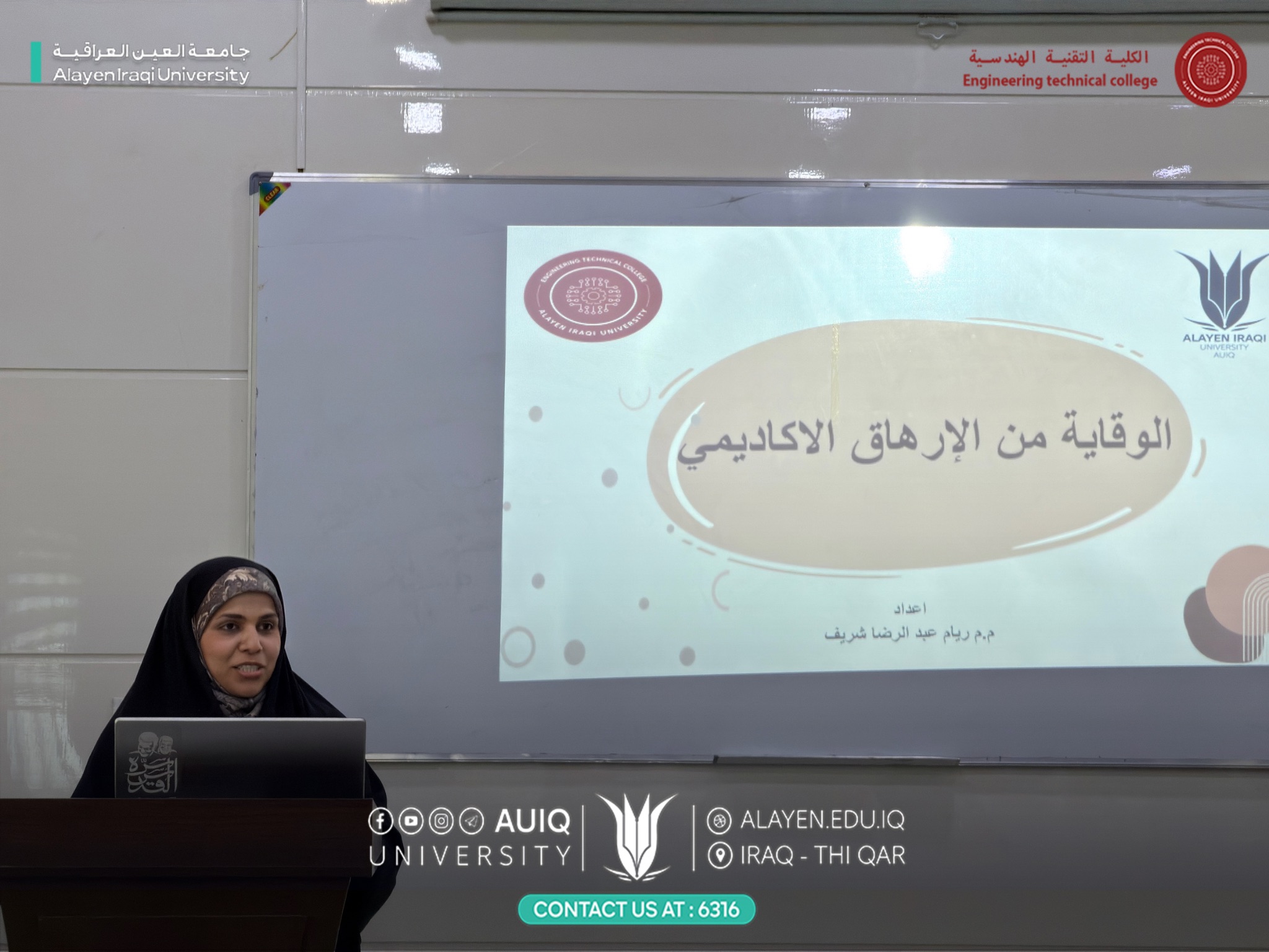 أقامت الكلية التقنية الهندسية ورشة عمل بعنوان «الوقاية من الإرهاق الأكاديمي»، قدّمتها م.م.ريام عبد الرضا باسم، ضمن برامج الكلية الهادفة إلى دعم الطلبة وتعزيز الوعي بالجوانب النفسية في البيئة الجامعية.