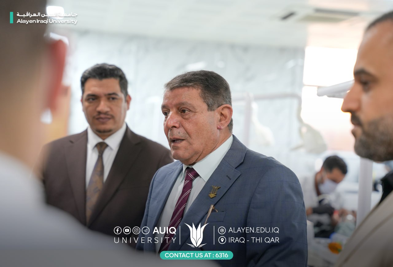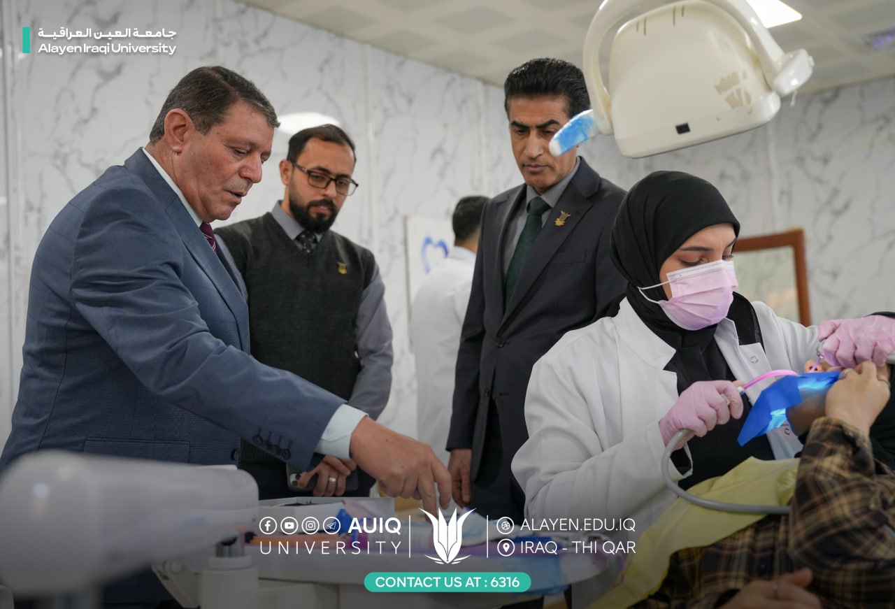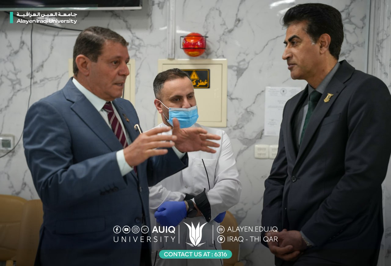 أجرى عميد كلية طب الأسنان الاستاذ الدكتور احسان عبد الله كميل ممثلا عن رئيس جامعة العين العراقية وعميد الكلية التقنية الهندسية الاستاذ المساعد الدكتور رافد صكبان الجبوري ممثلا عن مساعد رئيس الجامعة للشؤون العلمية زيارة ميدانية إلى المستشفى التخصصي التعليمي لطب الأسنان وكلية التربية، للاطلاع على سير العمل ومستوى الخدمات الطبية والتعليمية المقدمة.