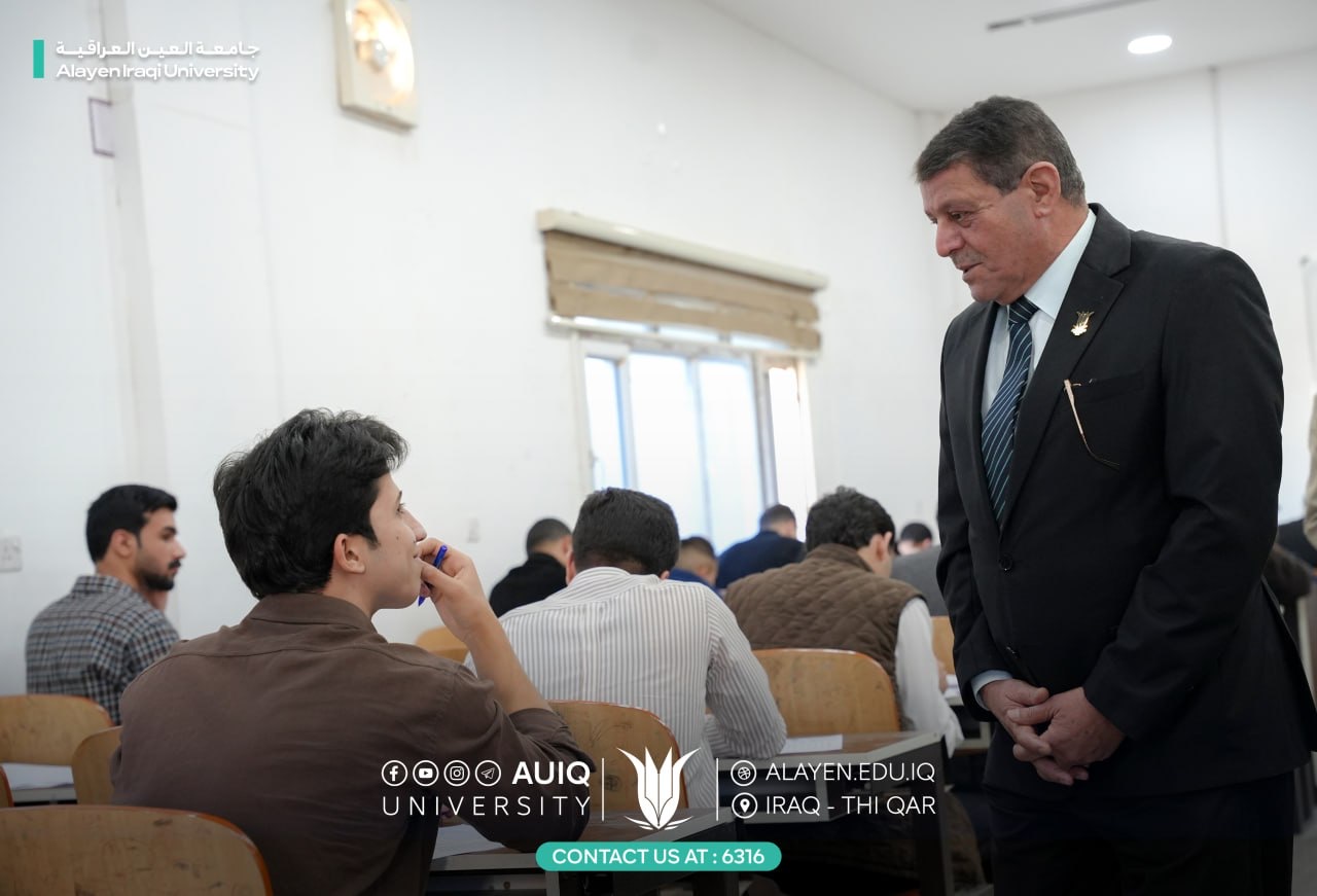واطّلع خلال الجولة على آلية تنظيم القاعات الامتحانية والإجراءات المتبعة لضمان انسيابية الأداء وتوفير الأجواء الأكاديمية الملائمة للطلبة، مؤكداً أهمية هذه الاختبارات في تعزيز جاهزية الطلبة للامتحانات النهائية.