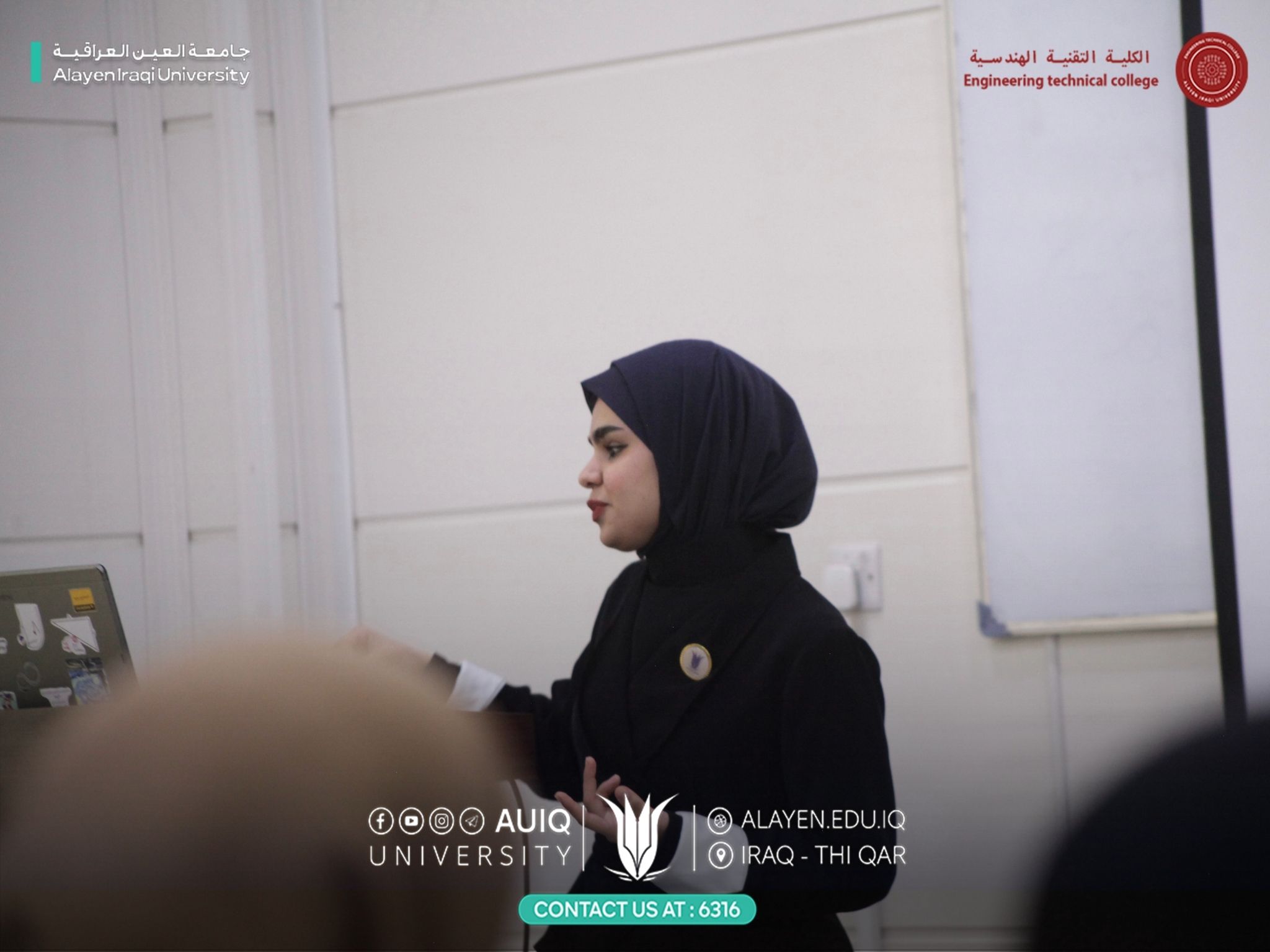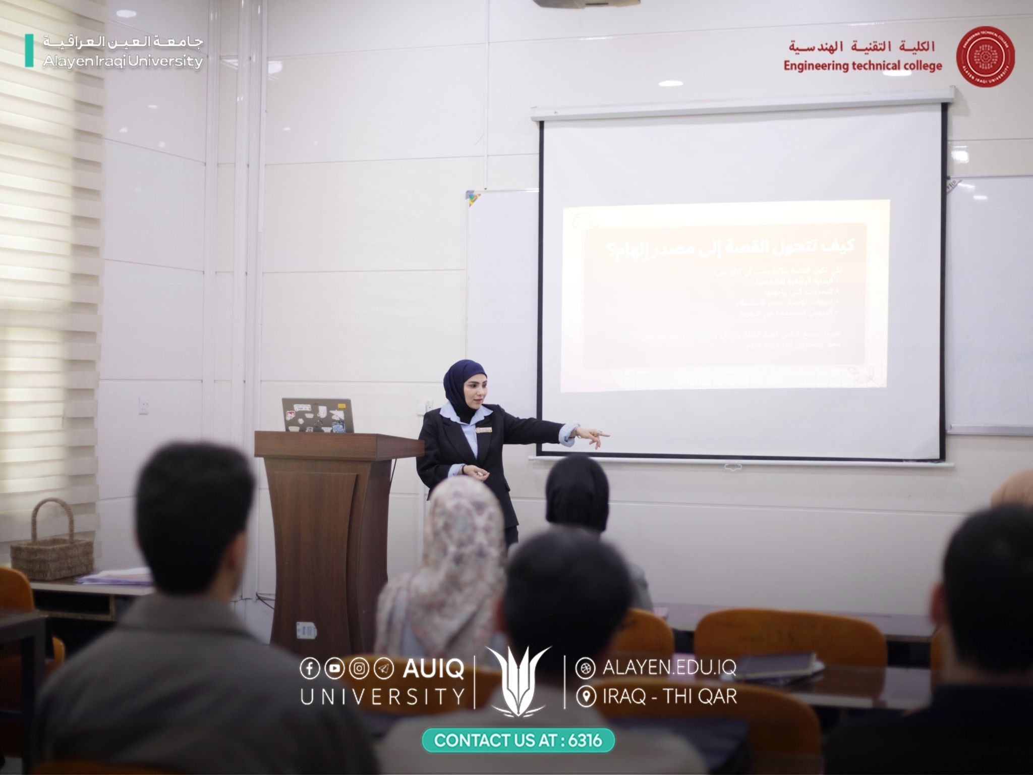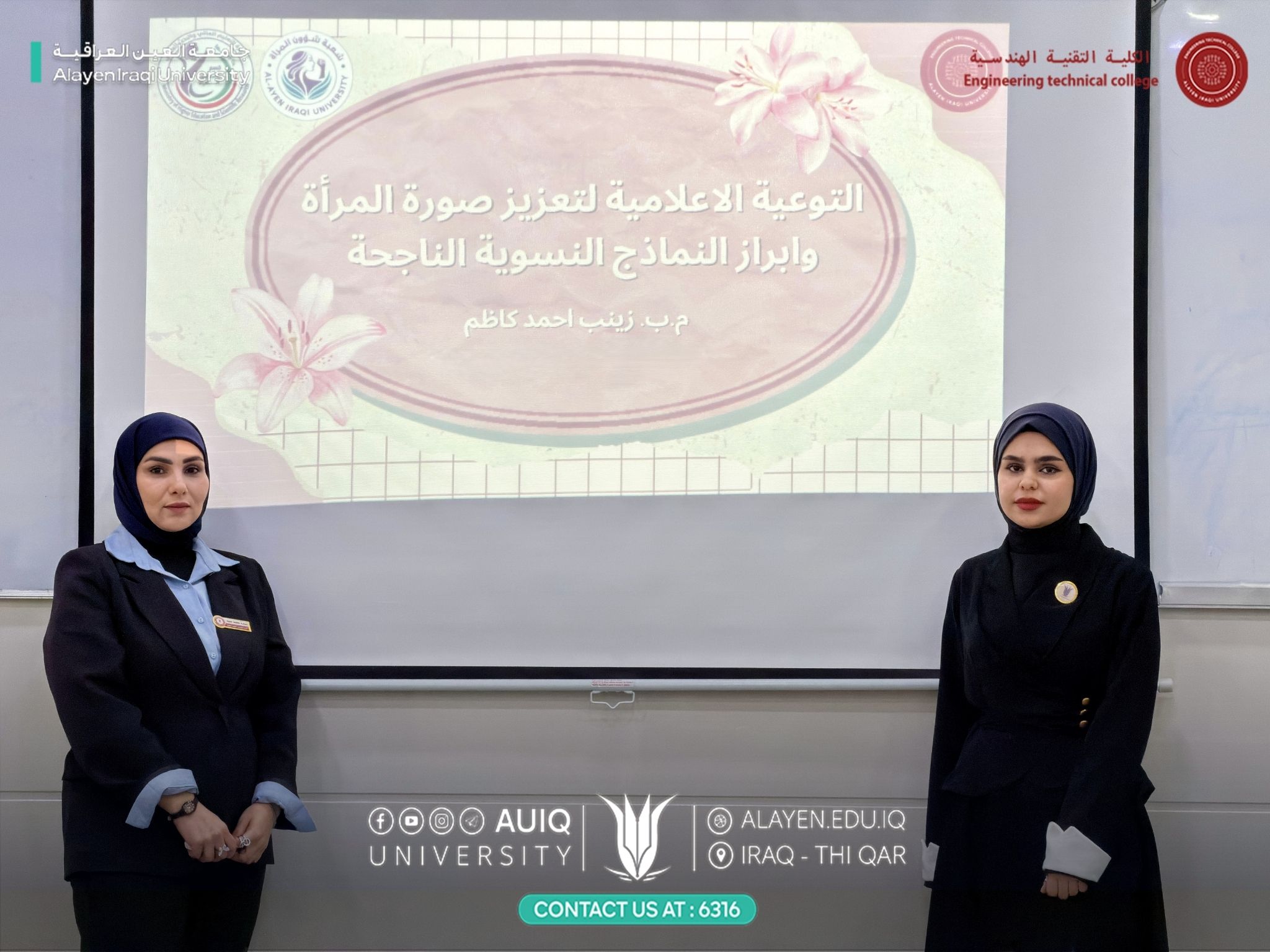 “التوعية الإعلامية لتعزيز صورة المرأة وإبراز النماذج النسوية الناجحة”، ألقتها م.ب. زينب أحمد كاظم، بحضور عدد من الطلبة ومنتسبي الكلية.