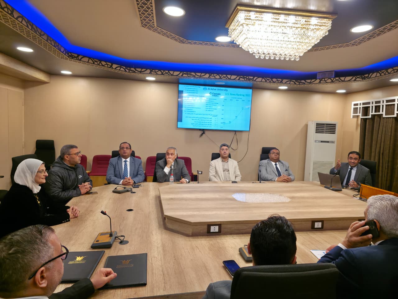 وكان في استقبال الوفد رئيس جامعة الأزهر الأستاذ الدكتور سلامة جمعة داود فضلاً عن نائب رئيس الجامعة للدراسات العليا والبحوث وعدد من السادة عمداء الكليات وبحضور مستشار التعليم العالي لنائب رئيس الجامعة الدكتور أحمد الشافعي.