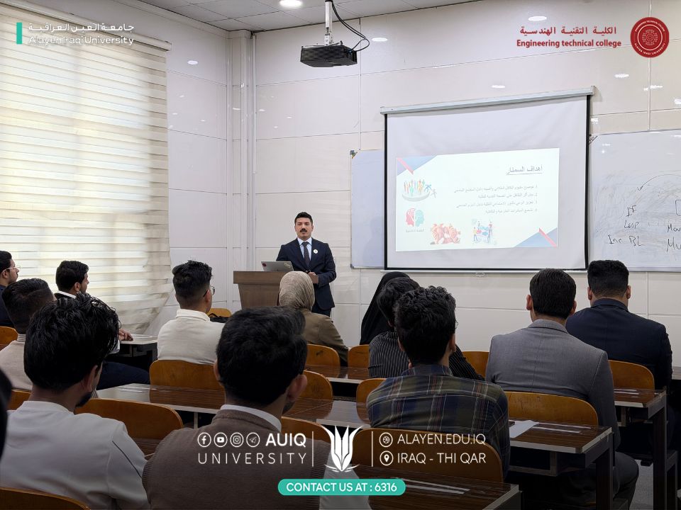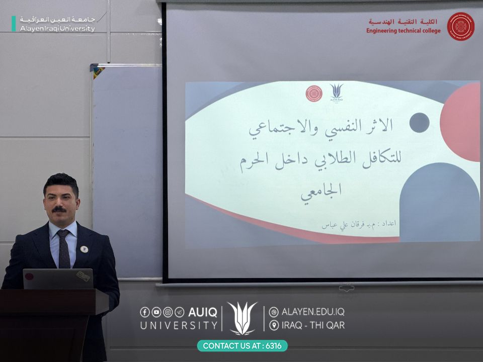 أقامت الكلية التقنية الهندسية ورشة عمل بعنوان “الأثر النفسي والاجتماعي للتكافل الطلابي داخل الحرم الجامعي”، ألقاها م.ب فرقان علي، بهدف تعزيز ثقافة التعاون والدعم المتبادل بين الطلبة.