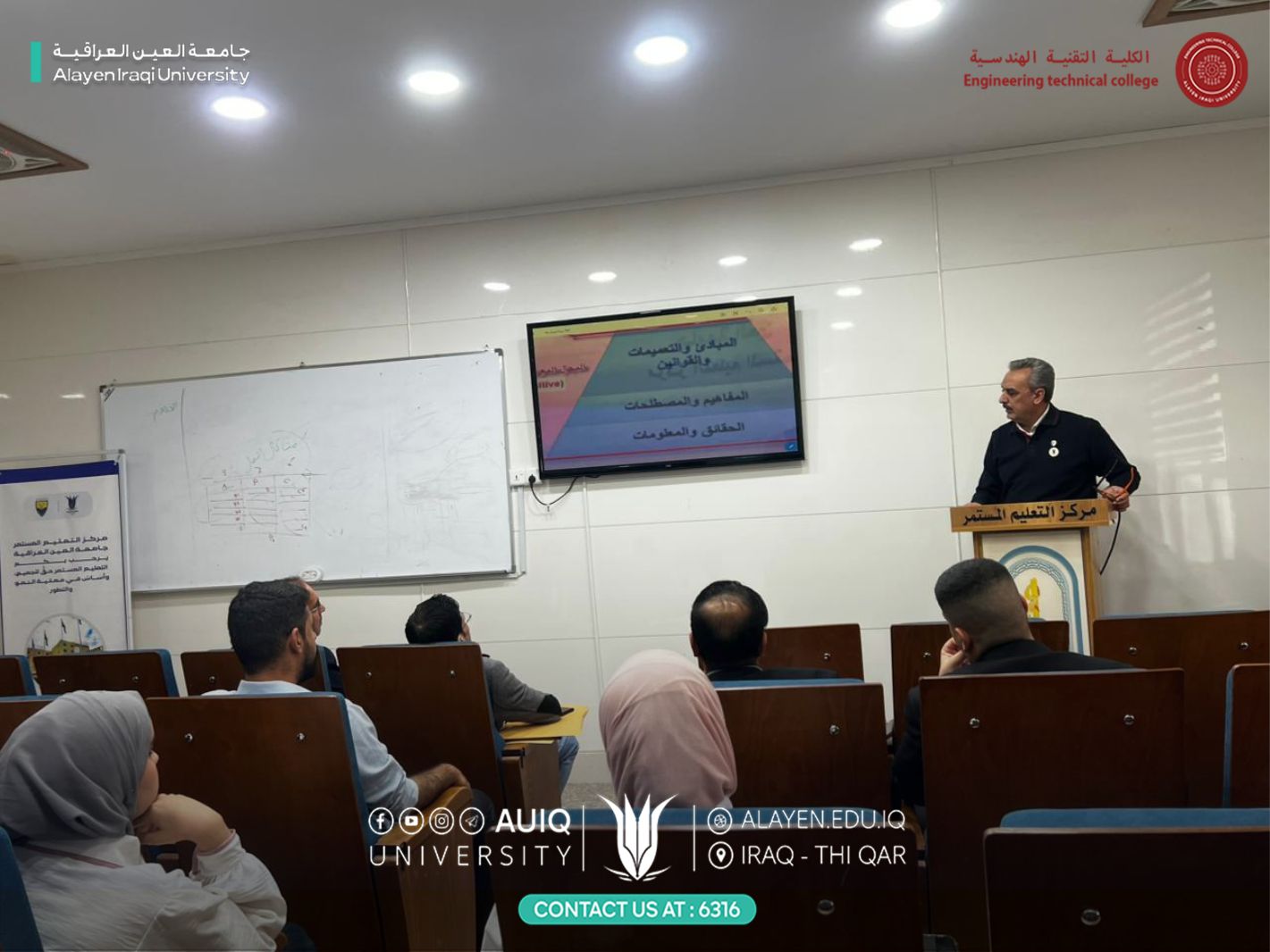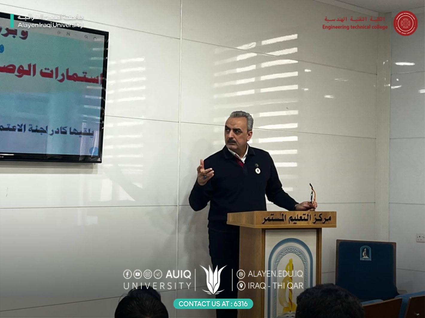 نظّم قسم ضمان الجودة في جامعة العين العراقية ورشة عمل تدريبية بعنوان “الوصف الأكاديمي من المفاهيم إلى التطبيق – الجزء الأول”، قدّمها أ.م.د. أحمد نجم نمر الصبيح رئيس قسم هندسة تقنيات الوقود والطاقة، وعضو لجنة الاعتماد المؤسسي والبرامجي في الكلية التقنية الهندسية ،وبمشاركة مسؤولي ضمان الجودة في كليات الجامعة كافة.
